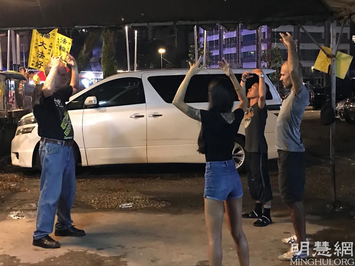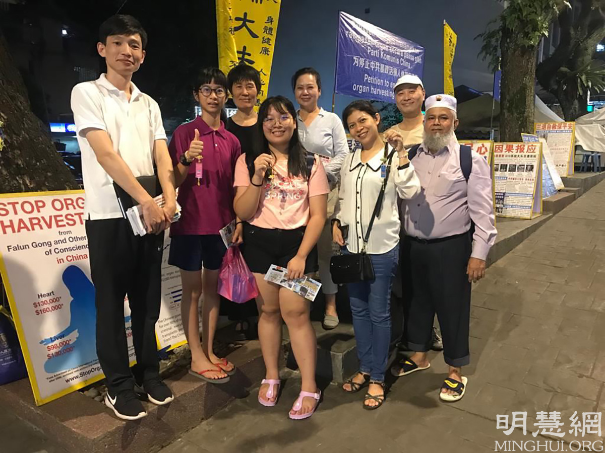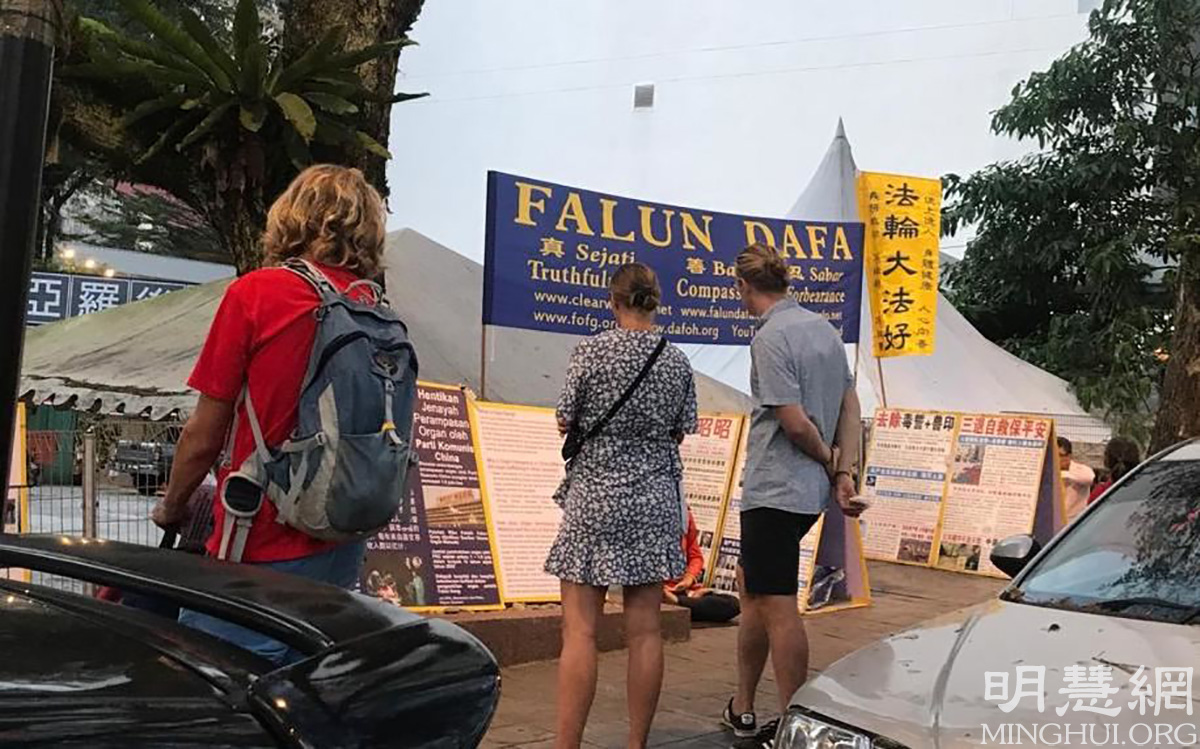 亚罗街(马来语:Jalan Alor)夜市是吉隆坡最著名的观光小吃街,聚集了马来人、华人、印度人的代表美食,也是观光客最常光顾的地方。这里自从有了法轮功真相点,观光客除了品尝夜市美食,也能从法轮功学员那里了解许多真相,触动正义良知,呼吁制止中共活摘器官的血腥恶行,为自己增添善行美德,可说是一举数得。