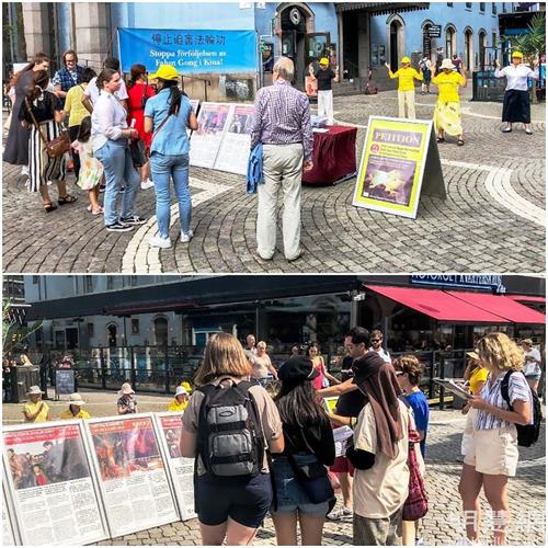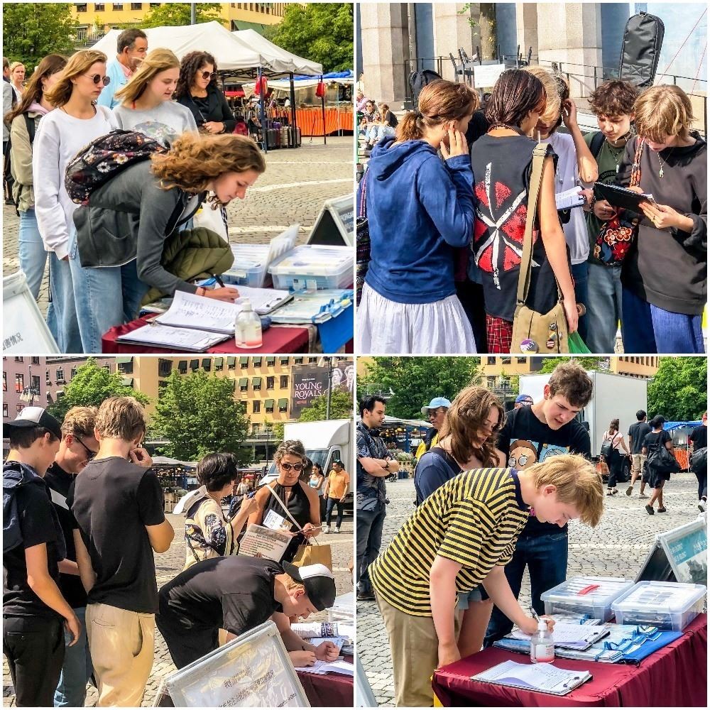 ![]() 图1:二零二一年八月份的每周五和周六下午,法轮功学员都在斯德哥尔摩音乐厅旁举办讲真相活动。 |