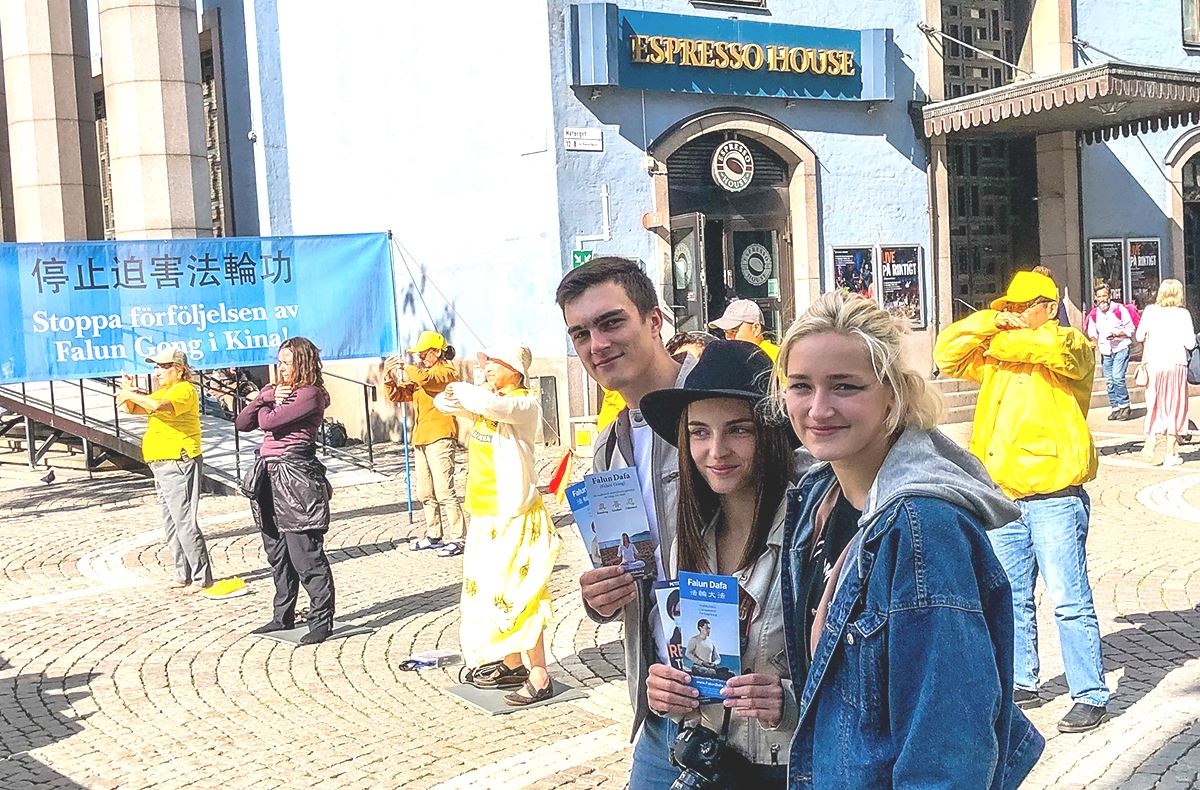 一个星期五的下午,一位早已明白了真相的瑞典退休老人特意走过来,有些激动地对学员说,“你们不是一般的人、不是普普通通的人,这么多年就这样不求回报的告诉人们在中国发生的人权迫害,谁也做不到。现在这个社会上没有象你们这样的人。”