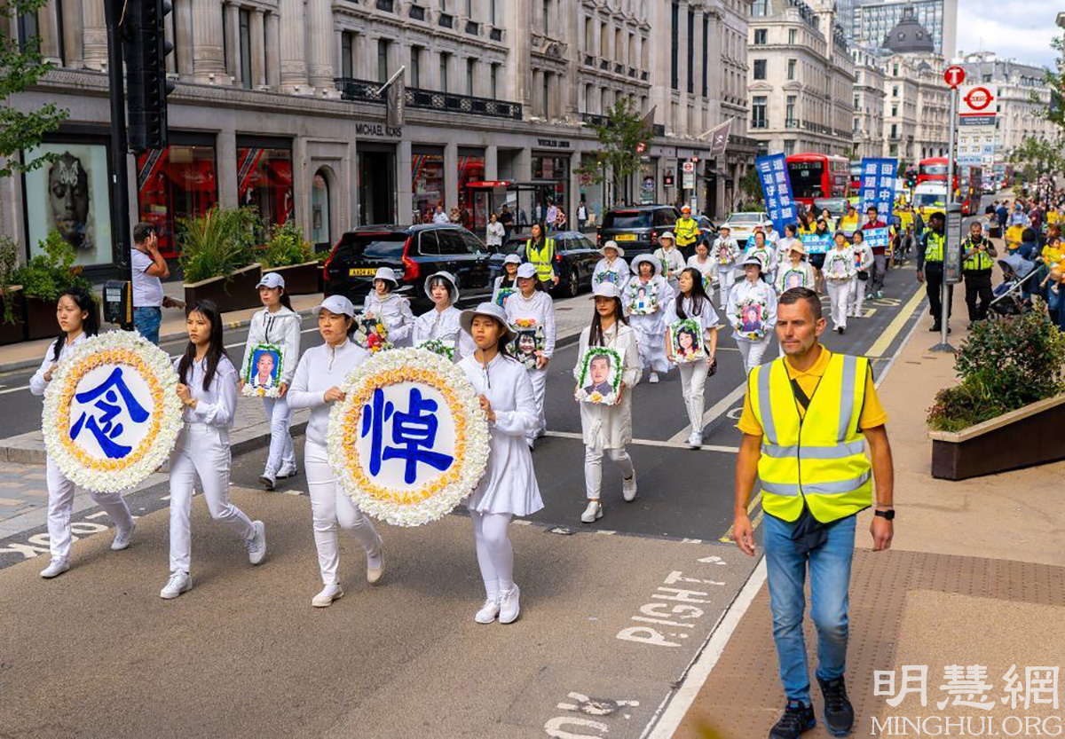 图1~6:二零二一年八月二十八日,英国法轮功学员在伦敦市中心举办游行,传播法轮功的真相,呼吁停止迫害。 |