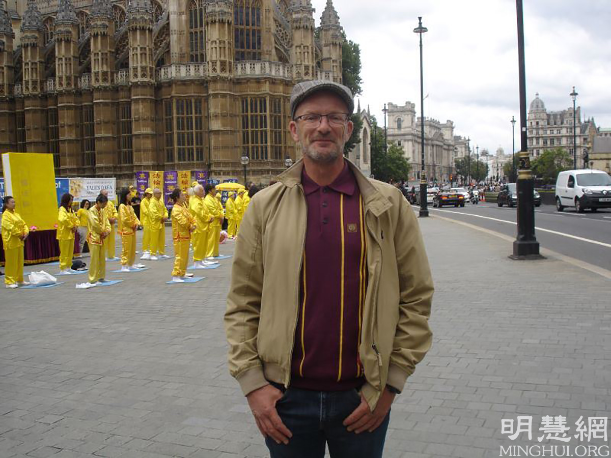 来自利物浦的马克观看着法轮功学员的功法展示,久久不愿离去。他说,他有时会看到法轮功学员在利物浦市中心。他觉得法轮功学员活动现场的能量场很好,给人一种祥和的感觉,所以想了解更多。