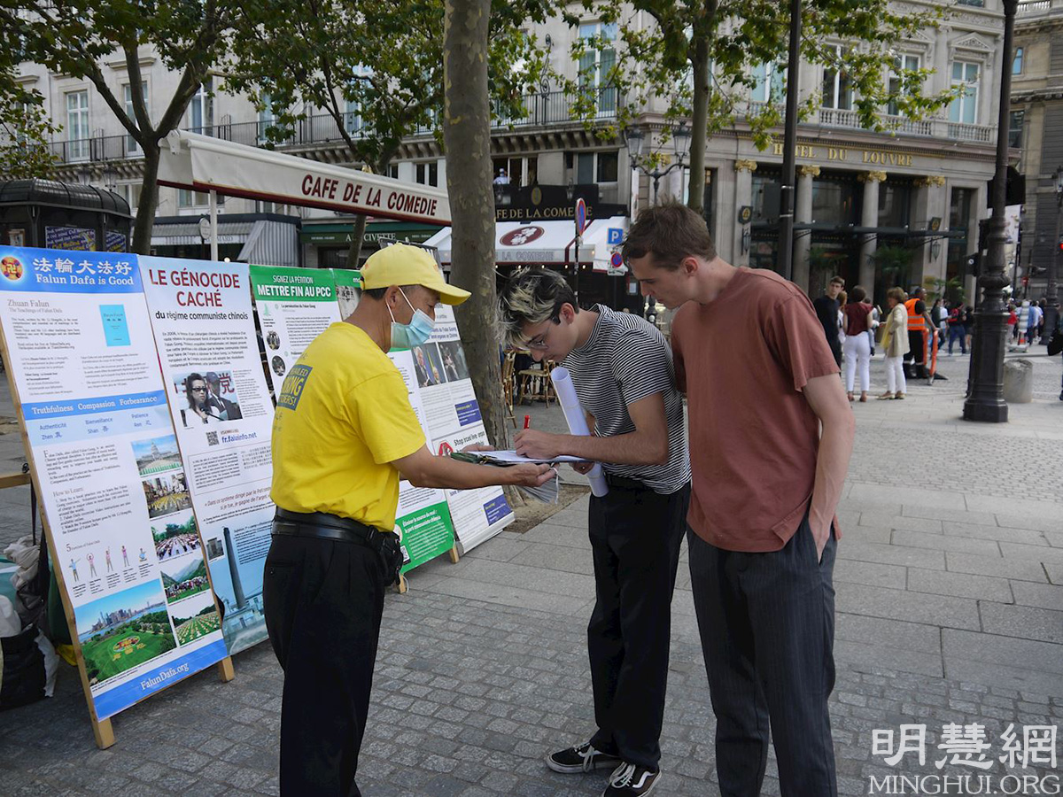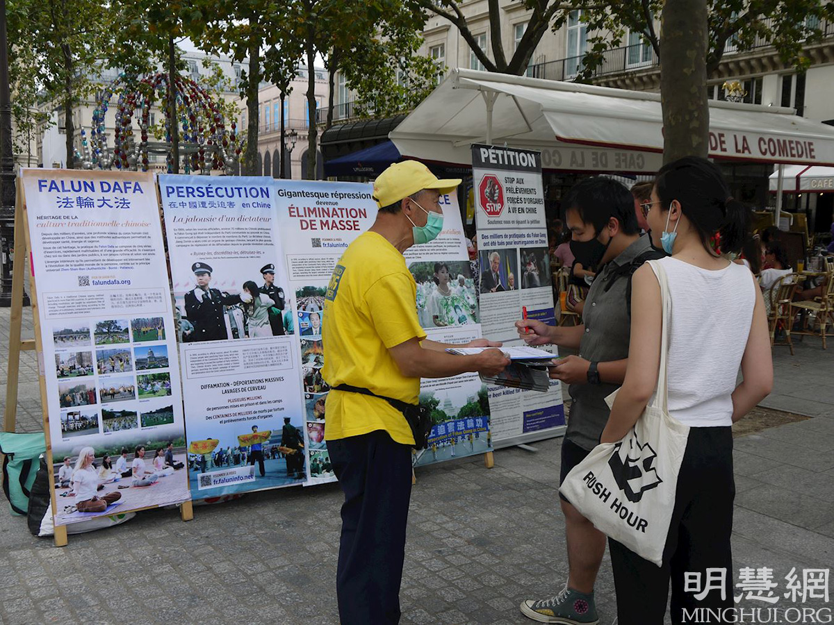 柏龙嘉(Patrice Belloundja)是油漆工匠,七月三十一日下午他在共和国广场遇见法轮功。他认为,“在中国,从一开始你们就被毛(泽东)迫害,随着共产主义时代,迫害一直延续到今天。中国人是被控制的,利用无人机、摄像头、数码身份识别等进行监控。”