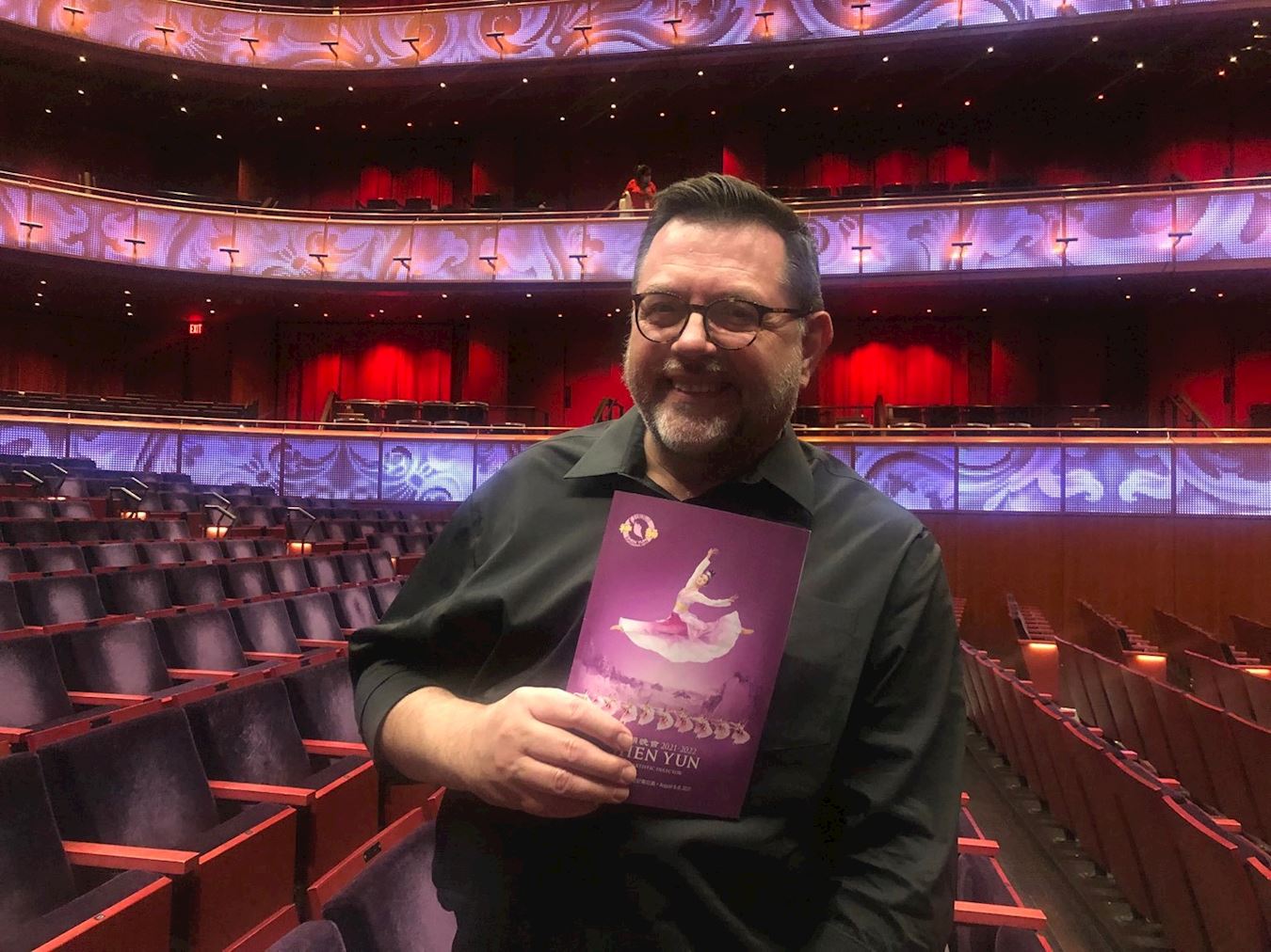图3:二零二一年八月六日晚,资深舞台艺术总监蒂姆。赫奇佩斯(Tim Hedgepeth)观赏了神韵世界艺术团在圣安东尼奥市的演出。