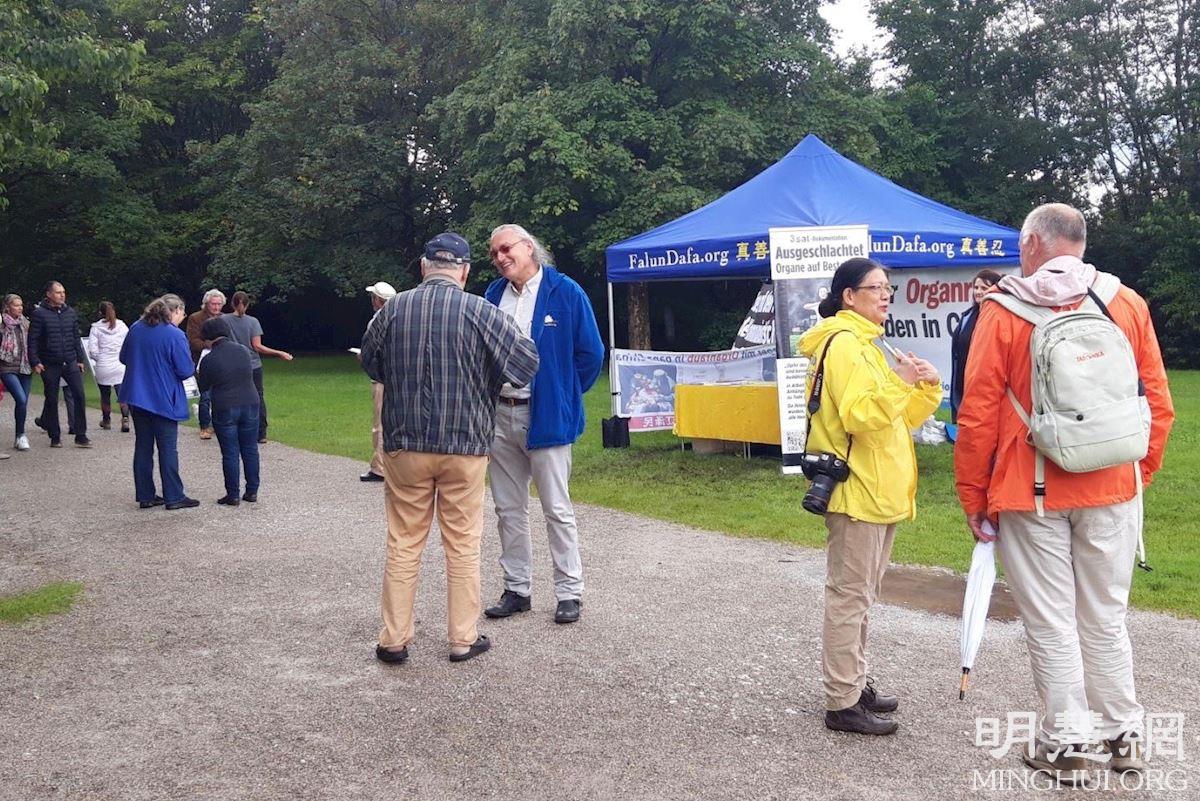 八月十六日和二十一日,法轮功学员在慕尼黑的霍亨索伦广场(Hohenzollernplatz)举办活动,揭露中共迫害法轮功的真相,并向民众传递法轮功的美好。