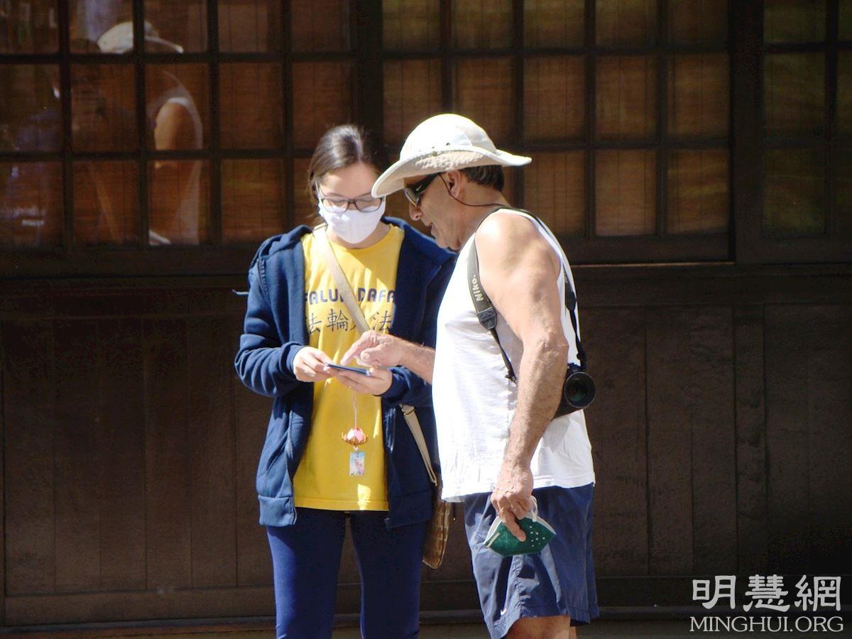 活动中市民积极询问详情,希望更深入了解中共的邪恶本质、法轮功学员反迫害经历,以及如何学炼法轮功。