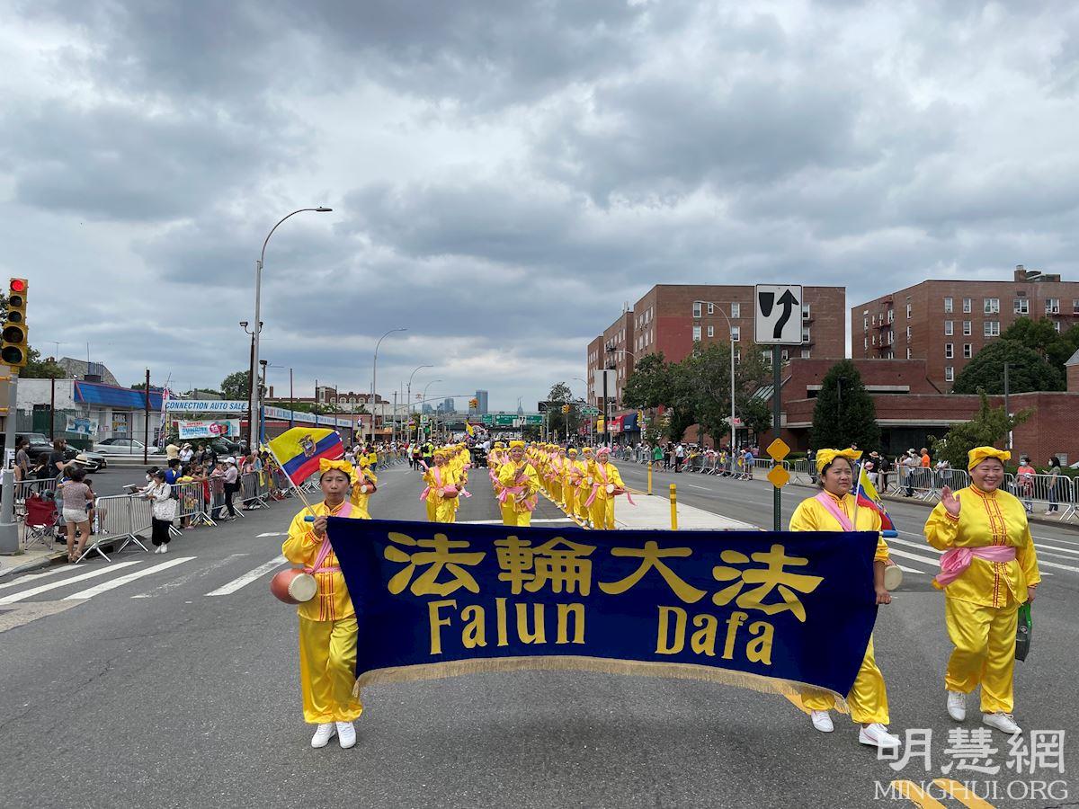 二零二一年八月八日,纽约皇后区杰克逊高地(Jackson Heights)举行了“第三十八届厄瓜多尔裔游行”。皇后区区长理查德兹(Donovan Richards)、国会议员孟昭文等政府官员和民意代表参加了游行与民同乐。法轮大法腰鼓队和炼功队伍也共襄盛举,为游行增添多元色彩,其亮眼的表现令两旁观众欢呼不断。