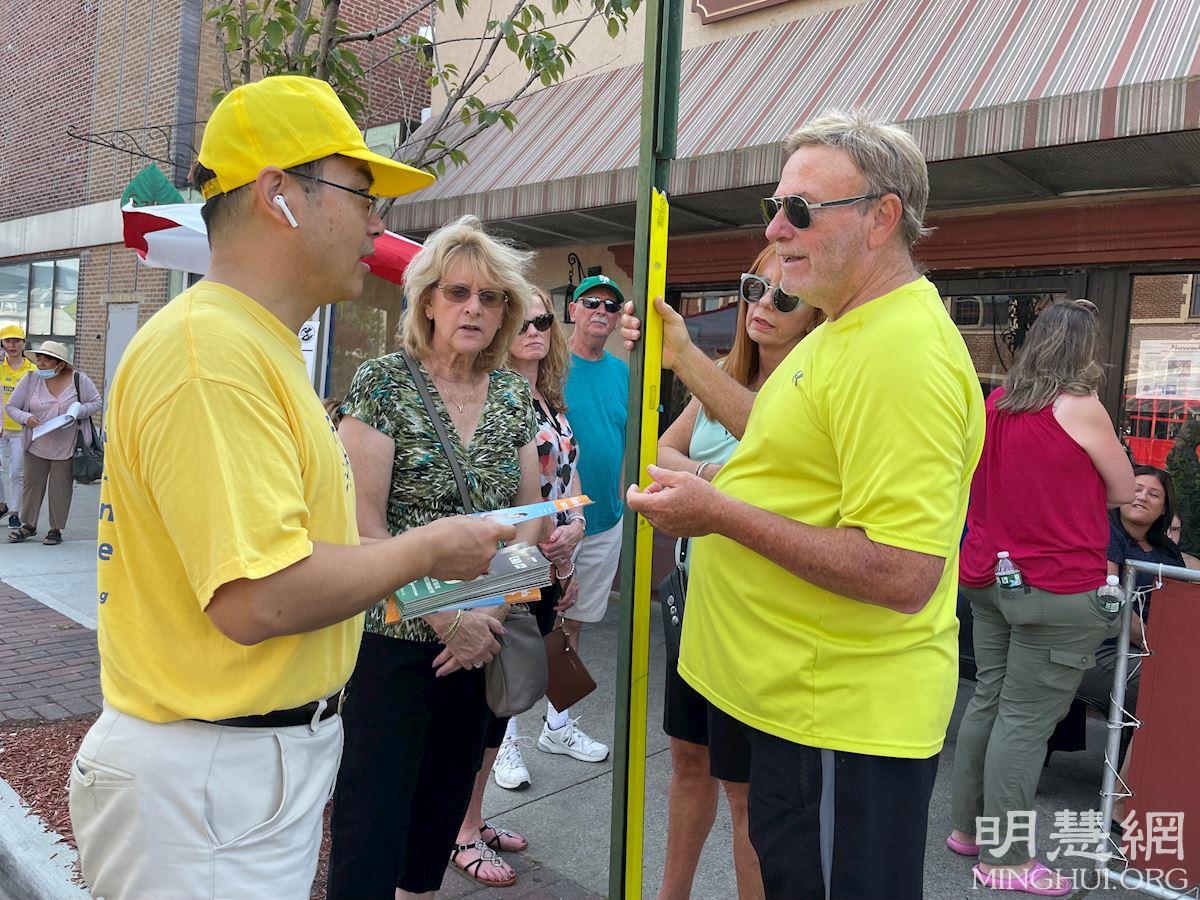 ![]() 图7:现场观众了解法轮功 |