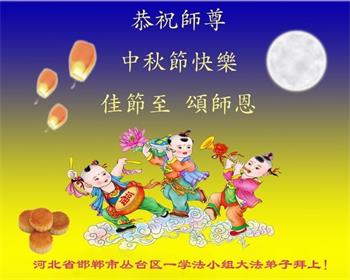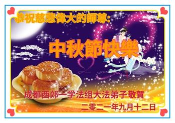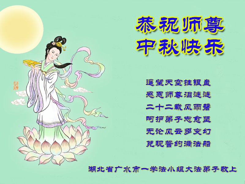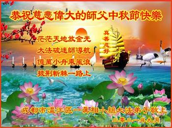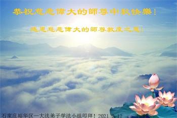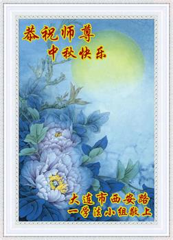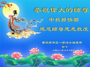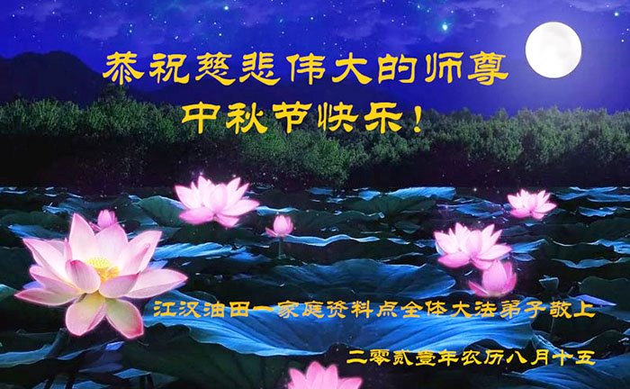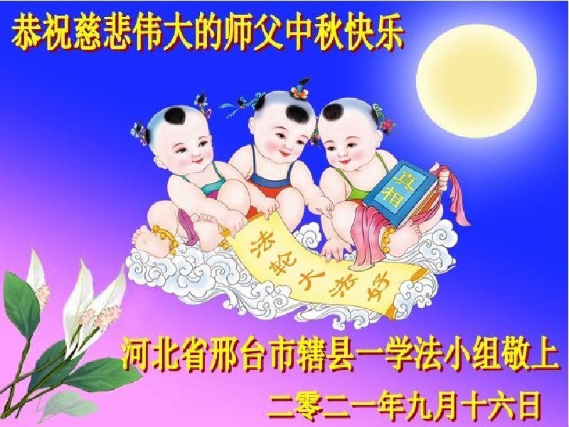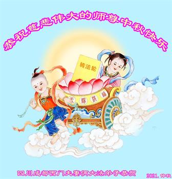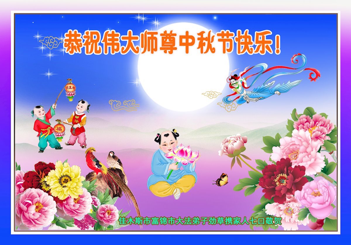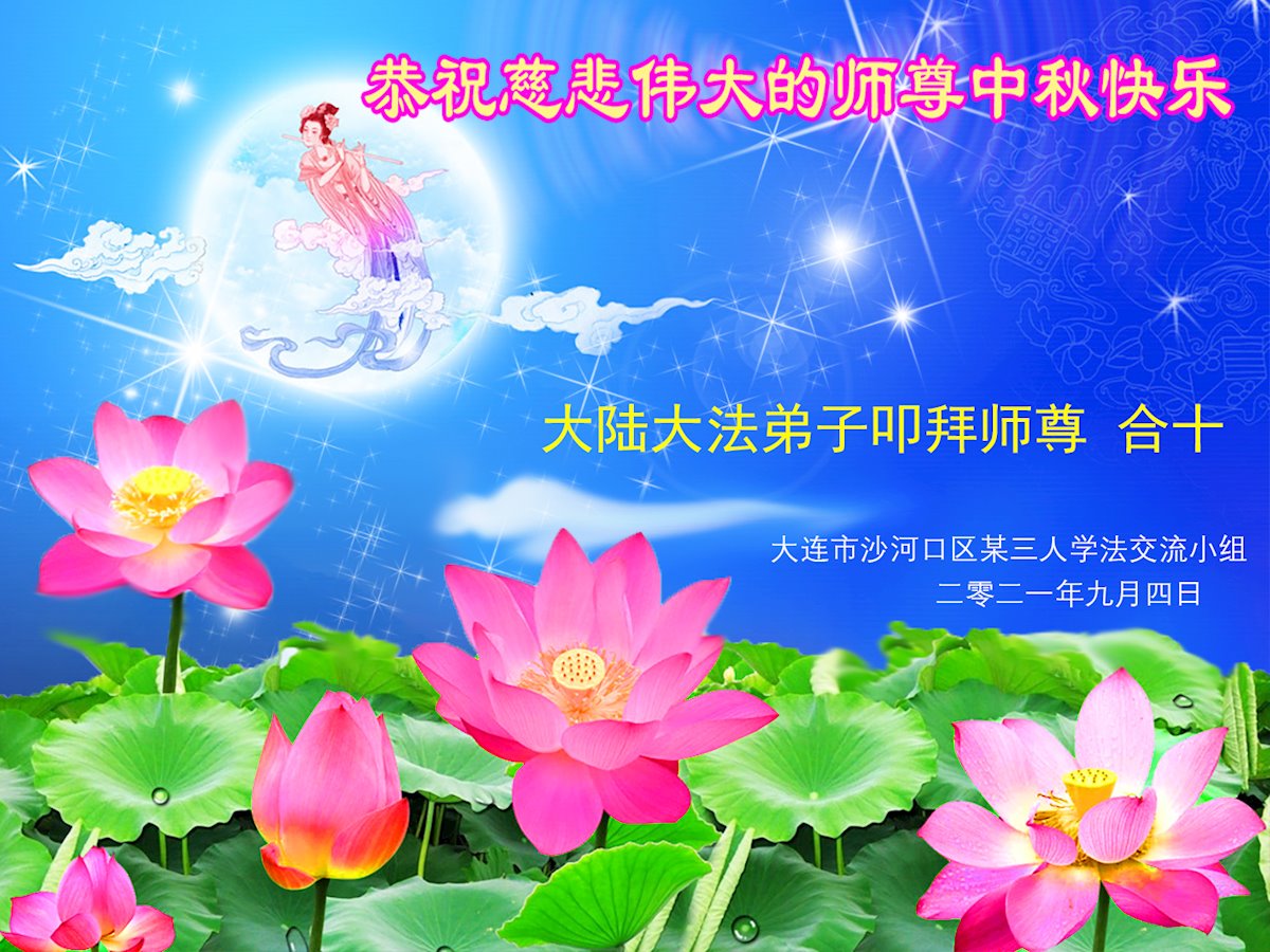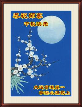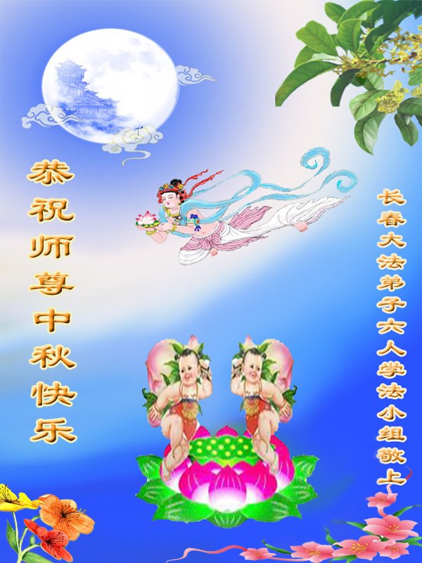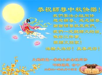 又是一年中秋,我们学法小组有当老板的、有教师、有做会计的、有家庭主妇、有70岁的老太太、有10多岁的大法小弟子,我们会相互配合,共同交流切磋、勇猛精進,形成整体,完成史前大愿,请师父放心!