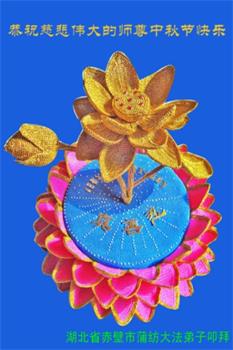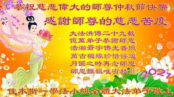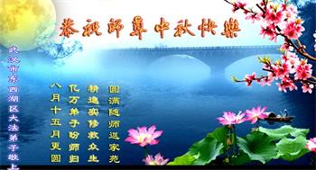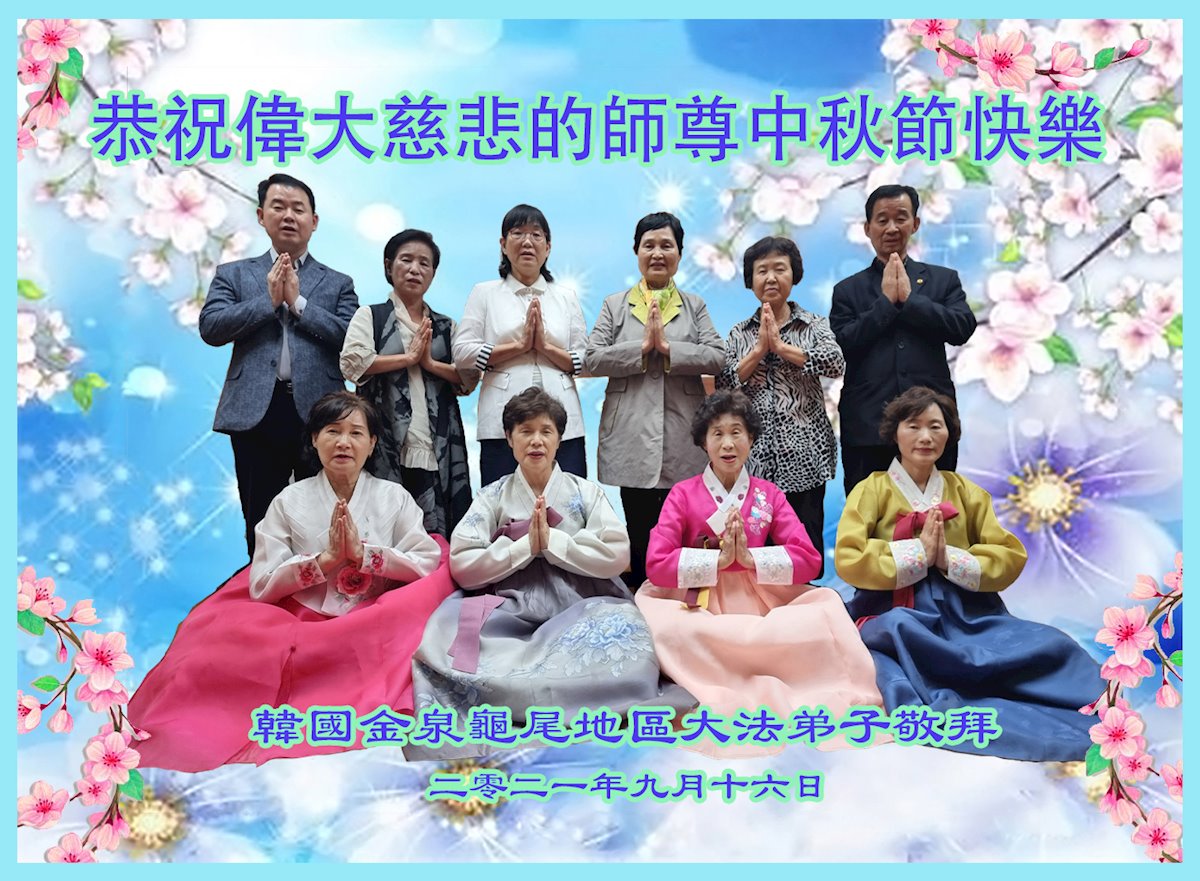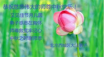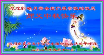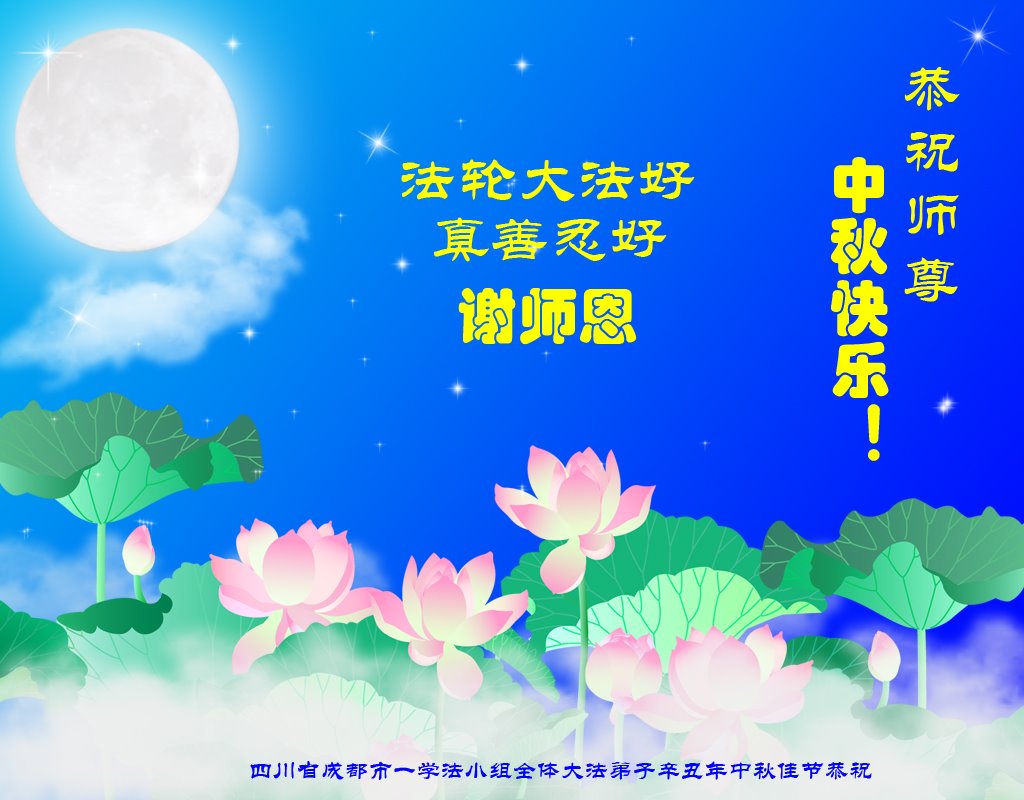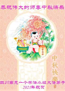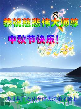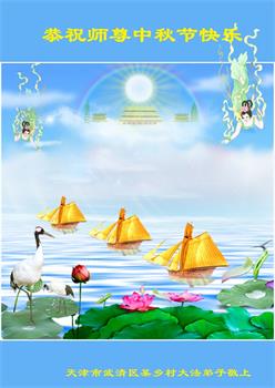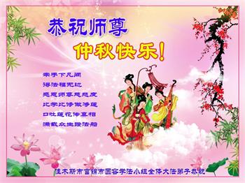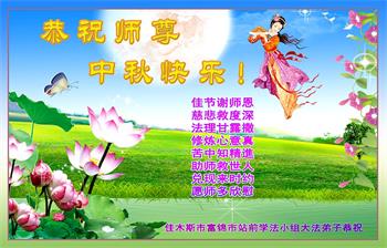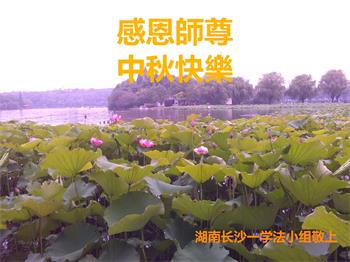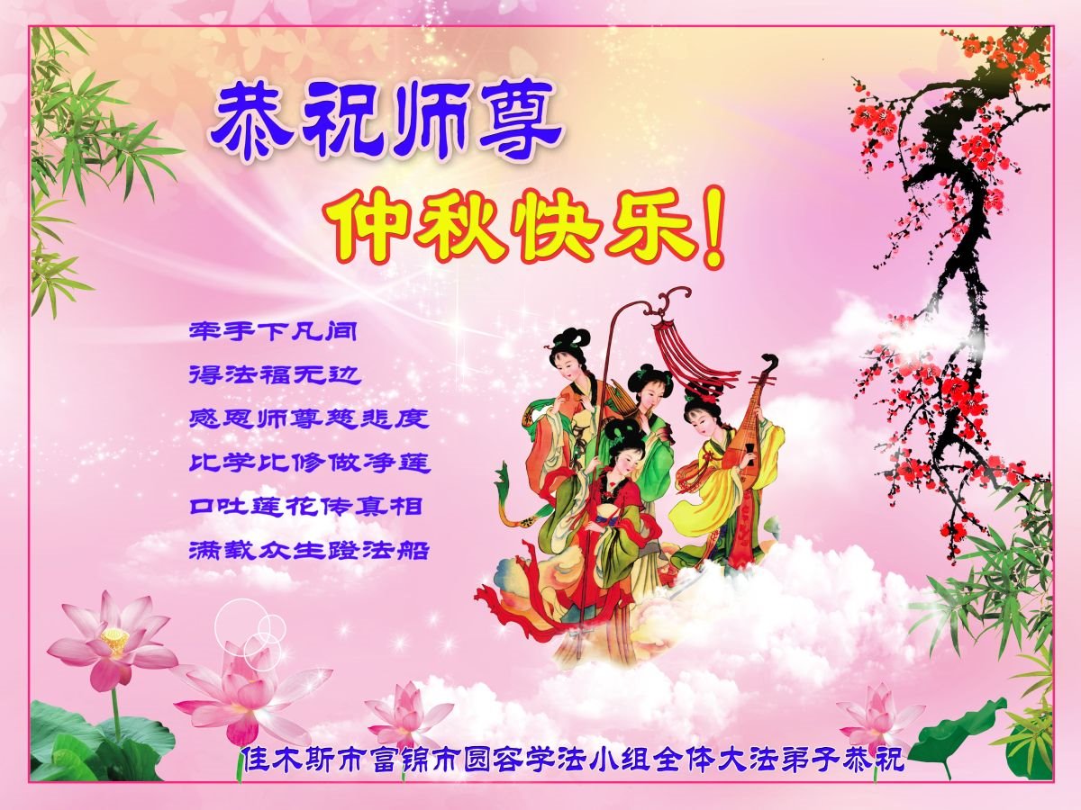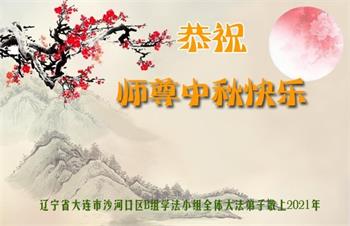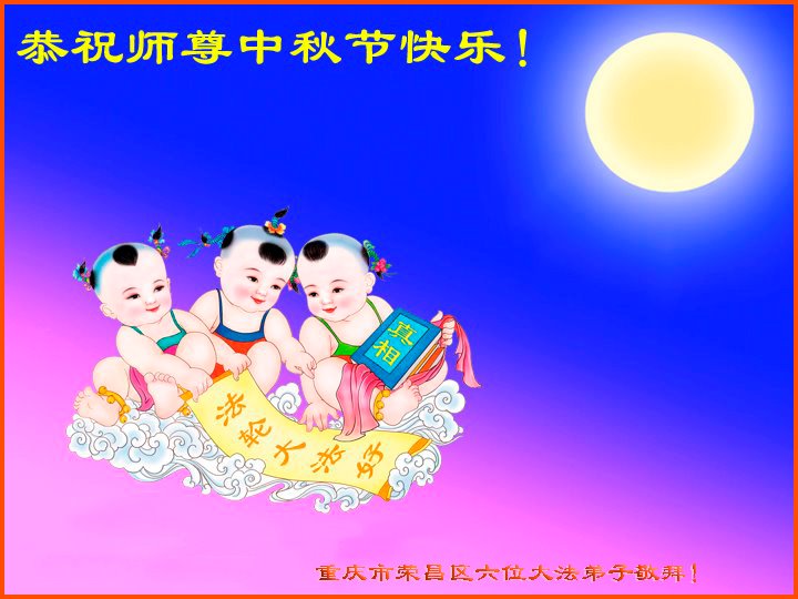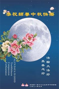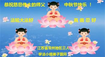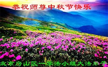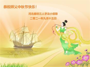 又是一年中秋,我们学法小组有当老板的、有教师、有做会计的、有家庭主妇、有70岁的老太太、有10多岁的大法小弟子,我们会相互配合,共同交流切磋、勇猛精進,形成整体,完成史前大愿,请师父放心!