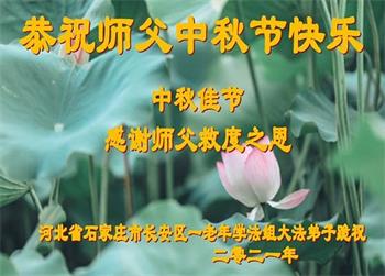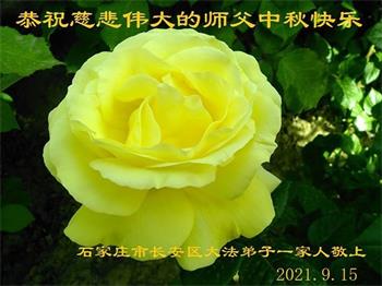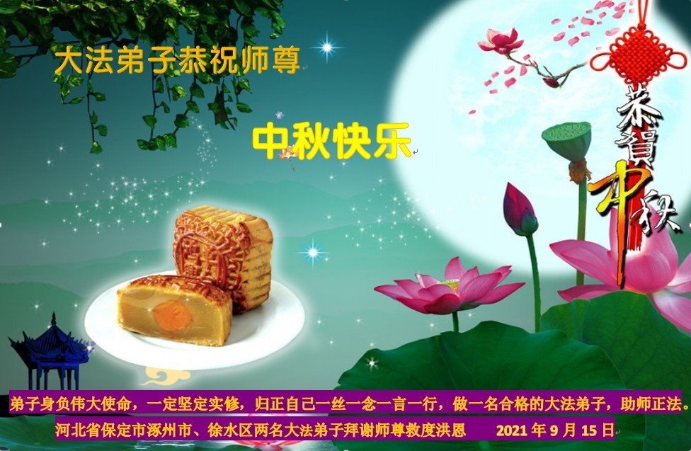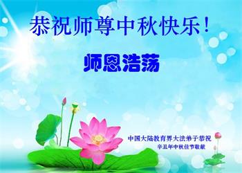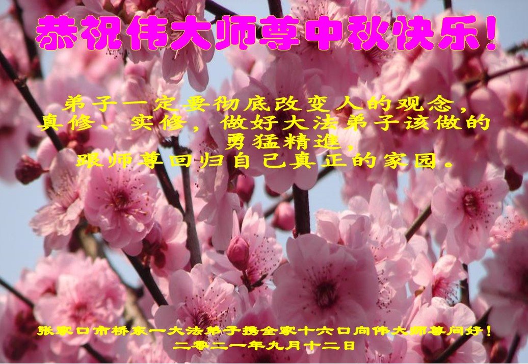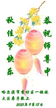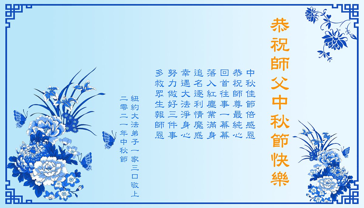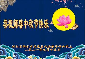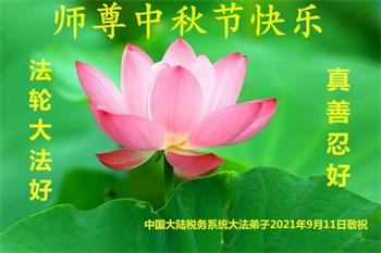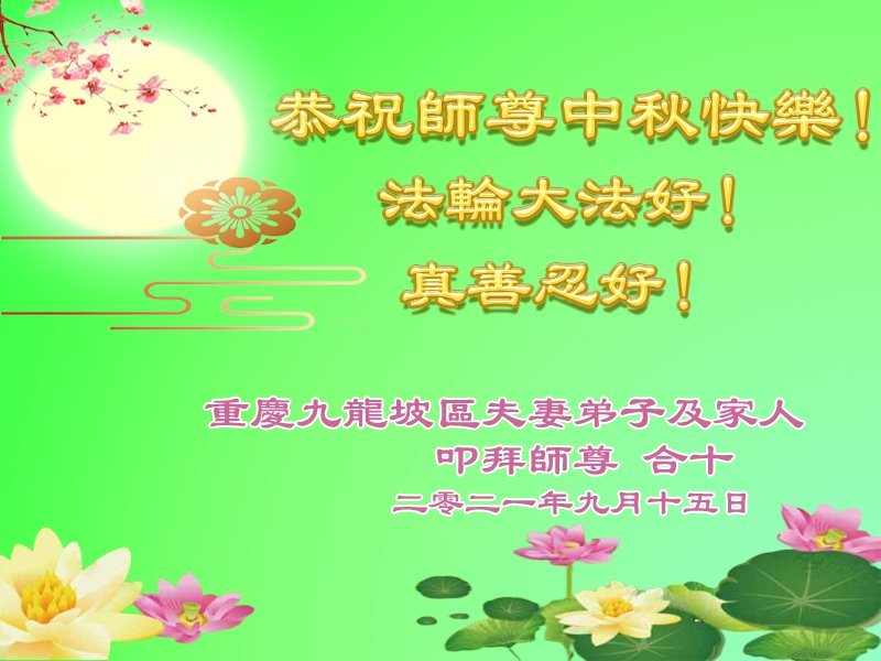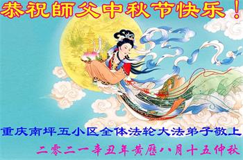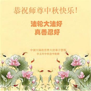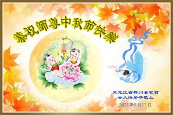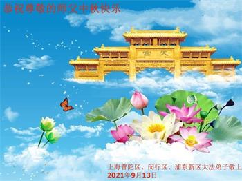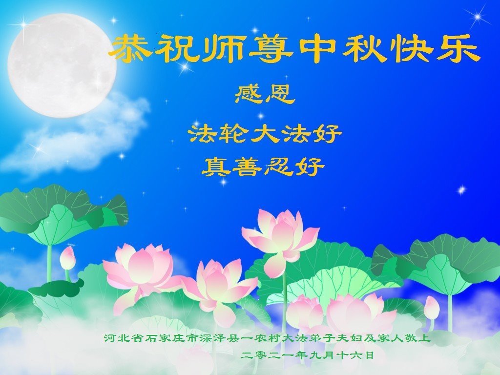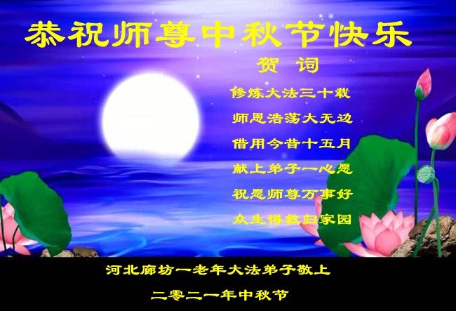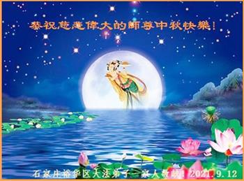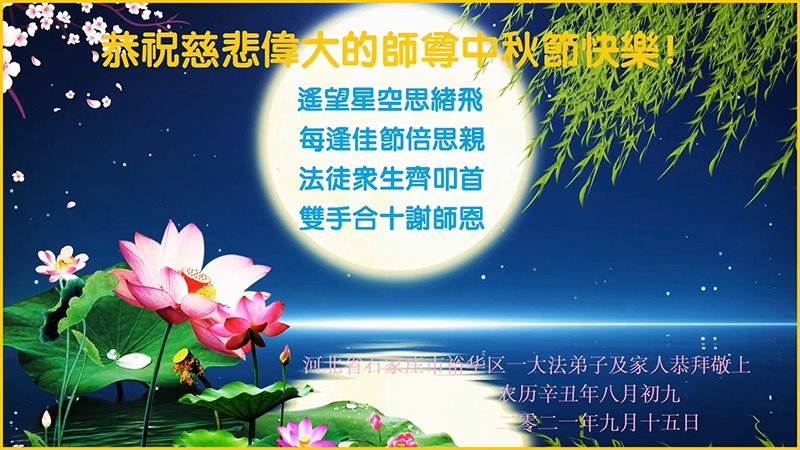 【明慧网二零二一年九月二十日】二十九年前,法轮大法创始人李洪志大师将真、善、忍大法洪传于世,上亿人身心受益。大江南北、五湖四海,每一名大法弟子深深庆幸在此末法末劫之时,得到如此珍贵的宇宙大法,得到师尊亲自救度。在这合家团圆的中秋节,来自中国大陆五十行业的大法弟子想念师尊,遥拜师尊中秋好!