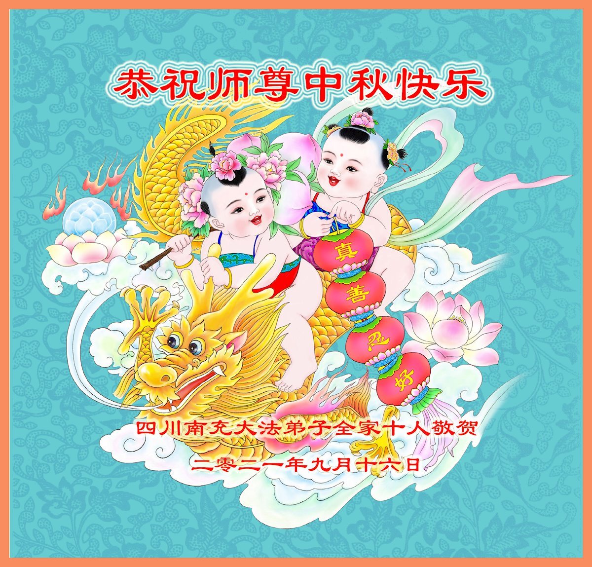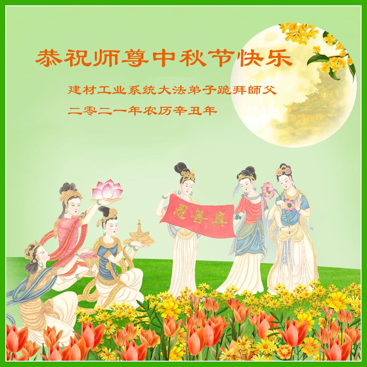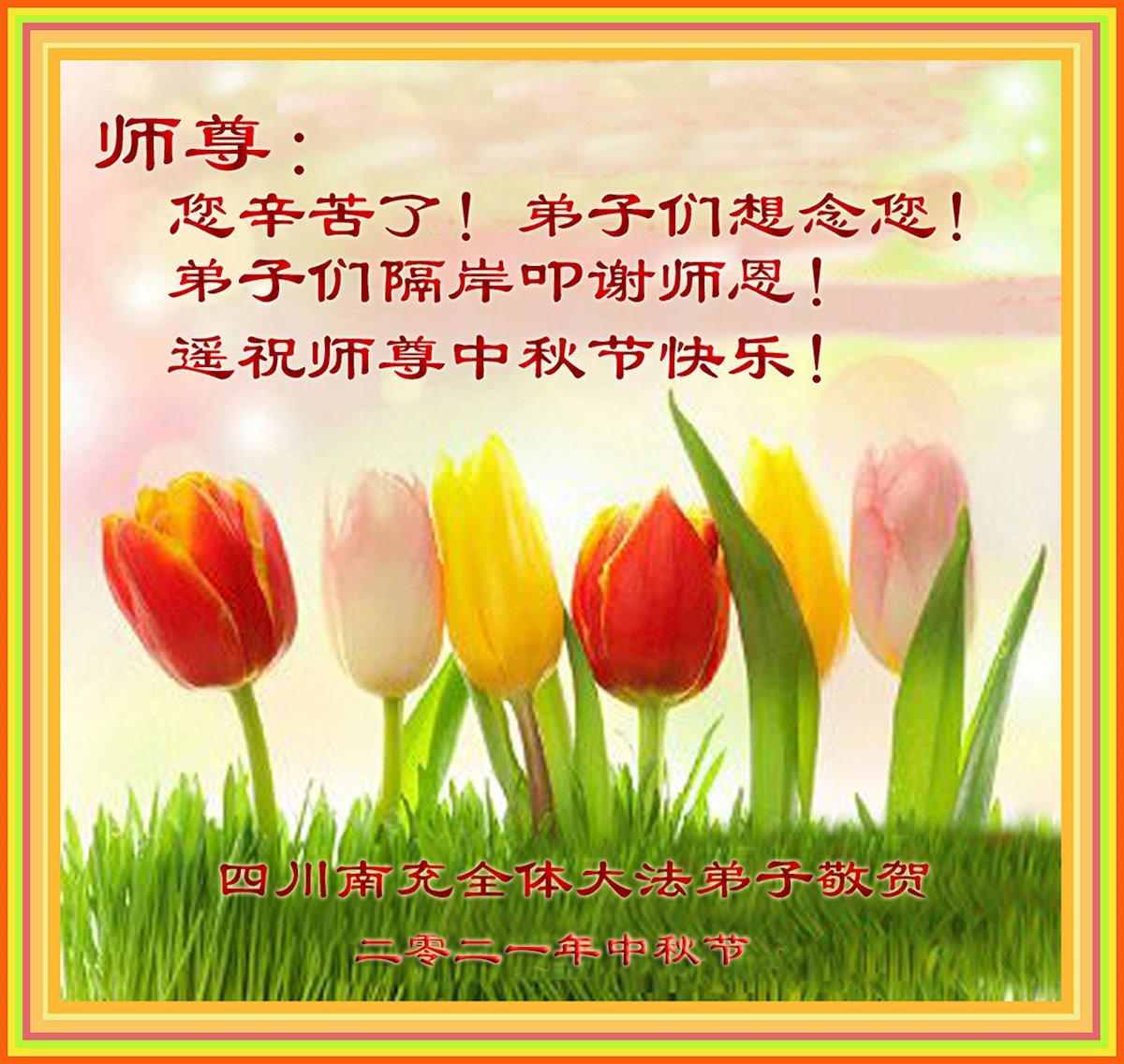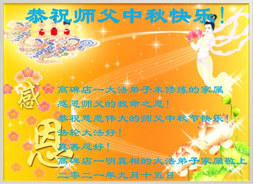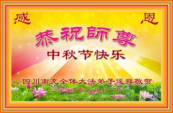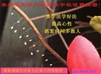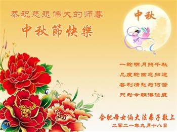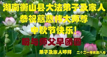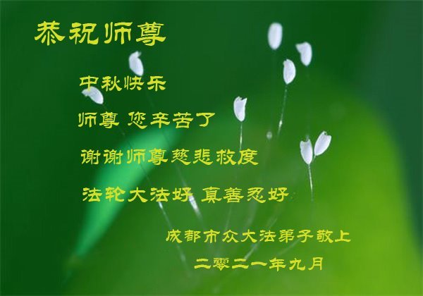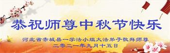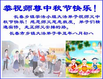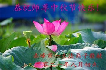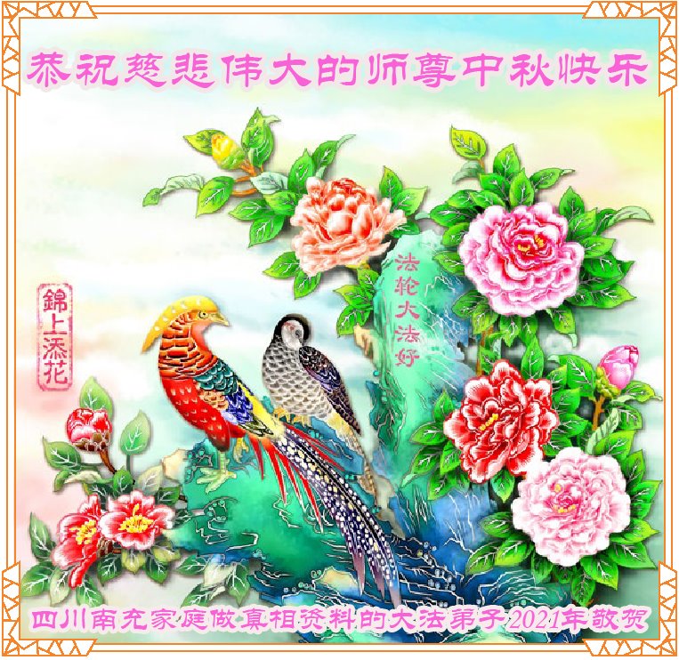 【明慧网二零二一年九月二十日】二十九年前,法轮大法创始人李洪志大师将真、善、忍大法洪传于世,上亿人身心受益。大江南北、五湖四海,每一名大法弟子深深庆幸在此末法末劫之时,得到如此珍贵的宇宙大法,得到师尊亲自救度。在这合家团圆的中秋节,来自中国大陆五十行业的大法弟子想念师尊,遥拜师尊中秋好!