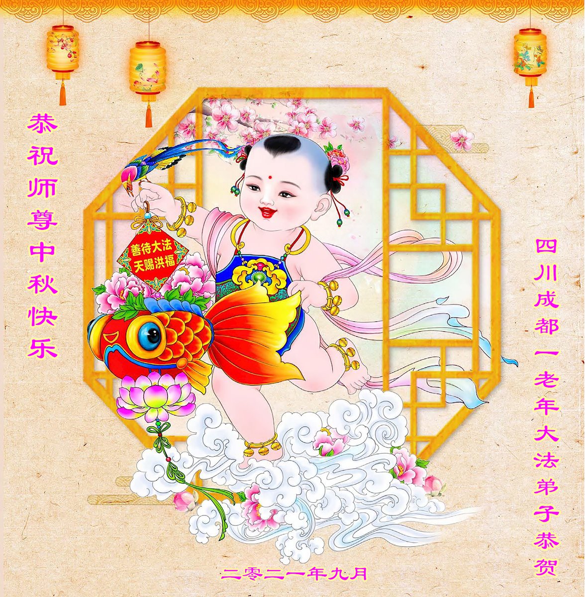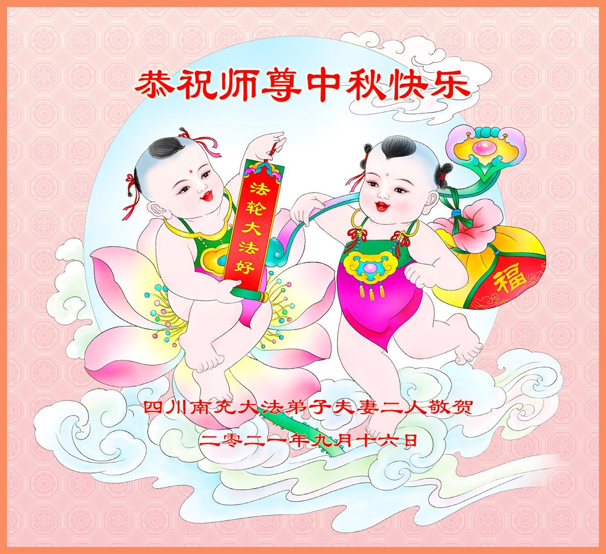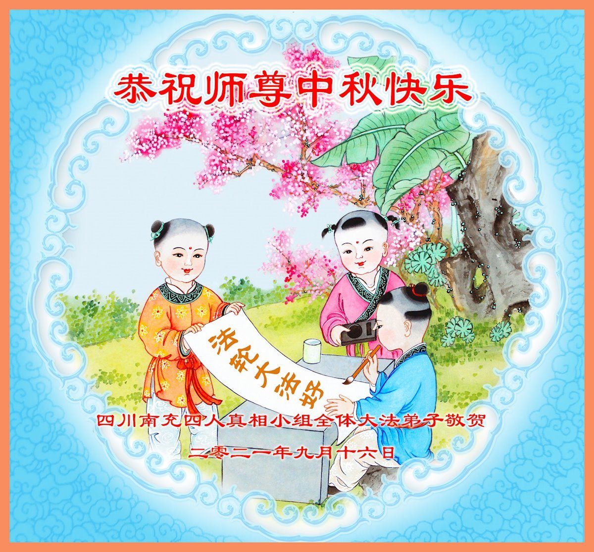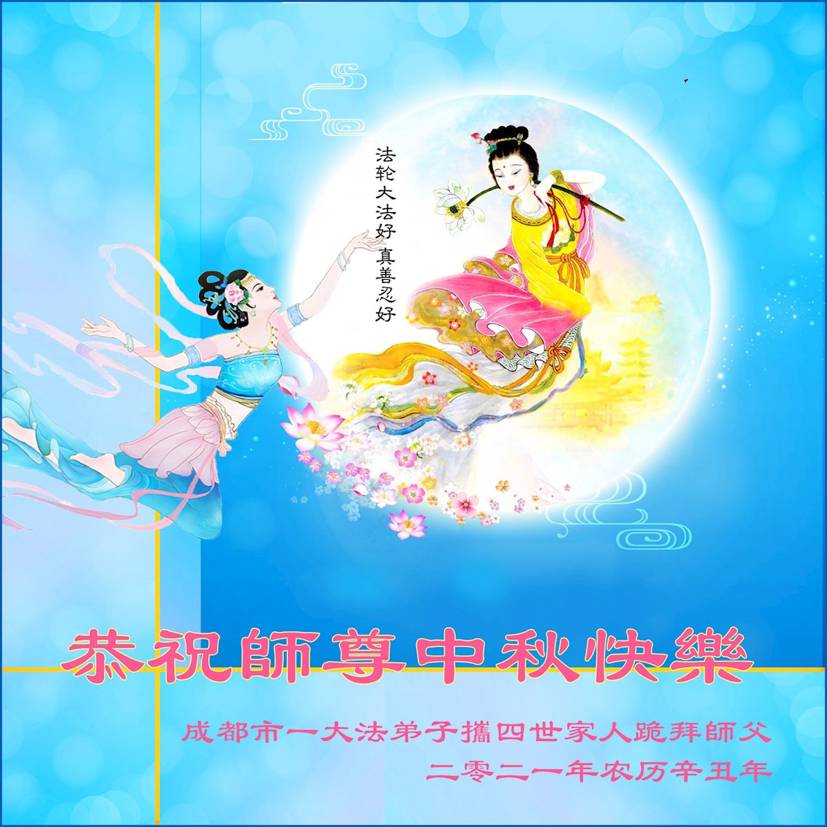【明慧网二零二一年九月二十日】二十九年前,法轮大法创始人李洪志大师将真、善、忍大法洪传于世,上亿人身心受益。大江南北、五湖四海,每一名大法弟子深深庆幸在此末法末劫之时,得到如此珍贵的宇宙大法,得到师尊亲自救度。在这合家团圆的中秋节,来自中国大陆五十行业的大法弟子想念师尊,遥拜师尊中秋好!