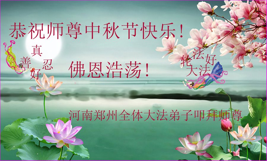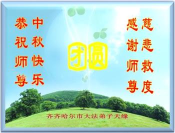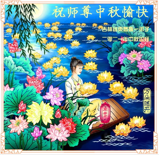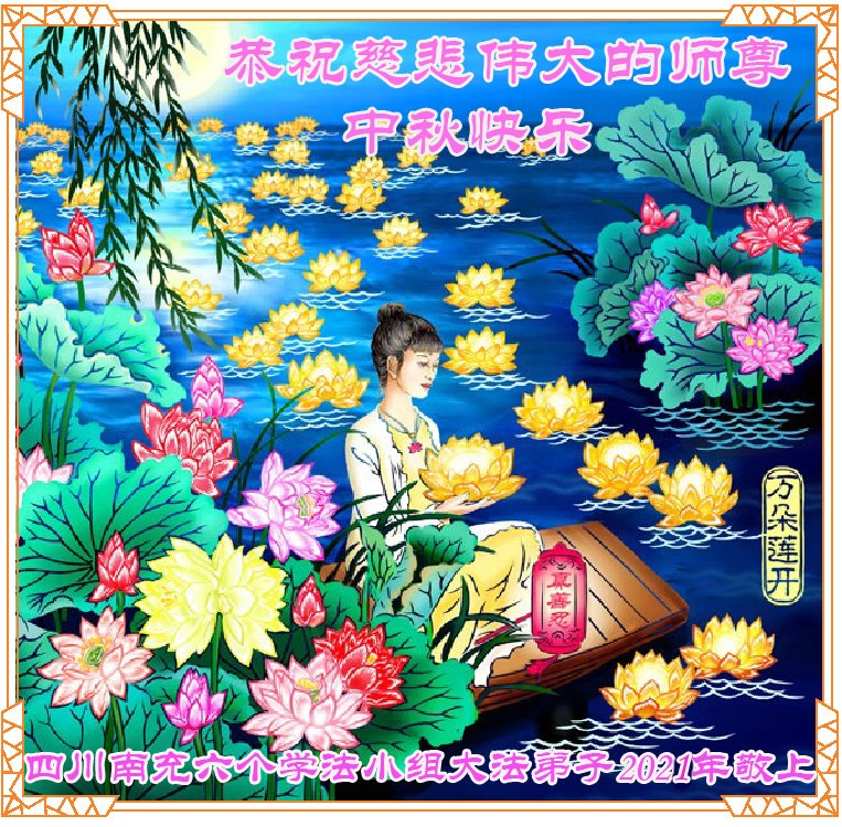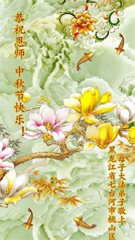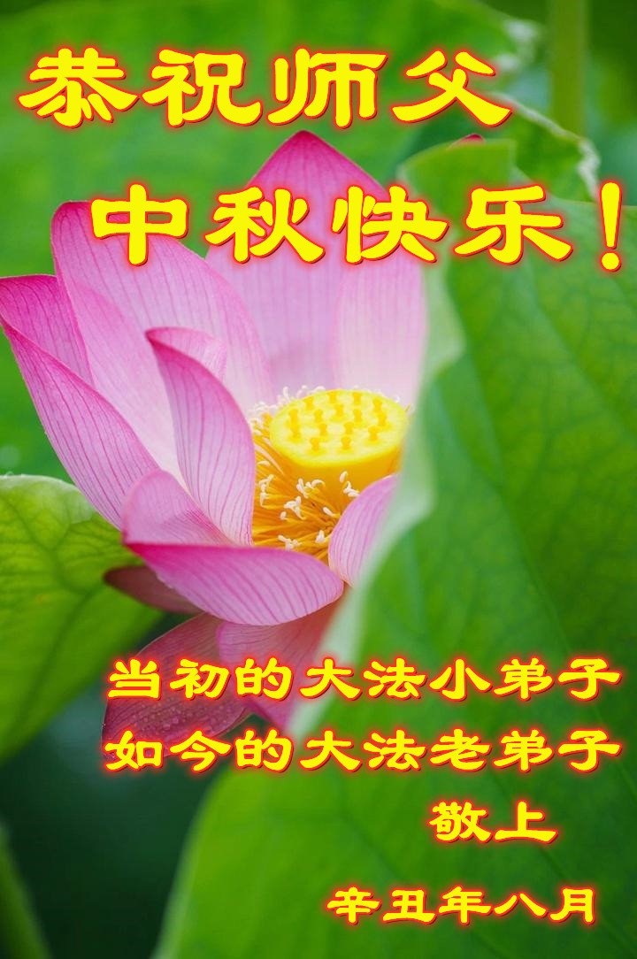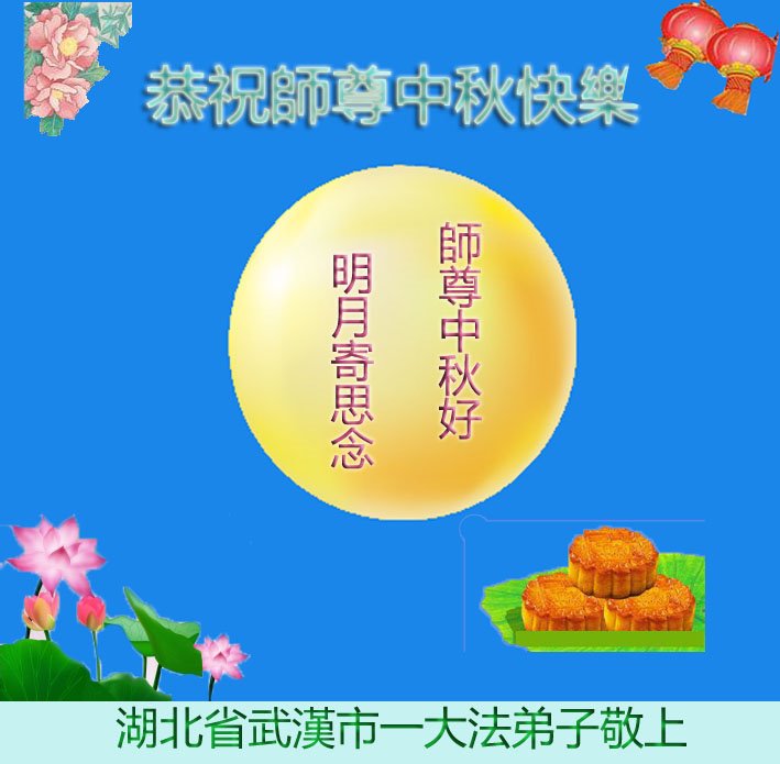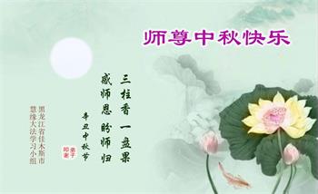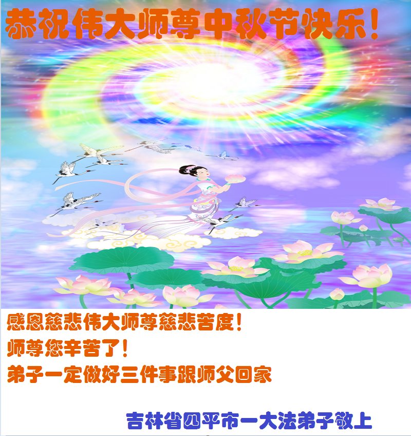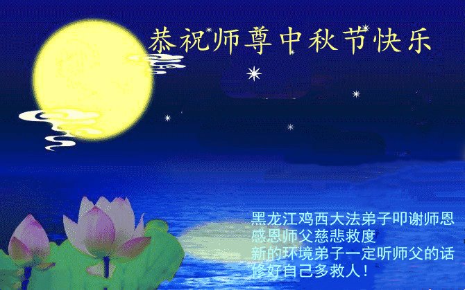 脑中装着大法,生命就有了希望,心中装着众生,再苦也不觉的辛劳,感恩师尊将法轮大法的法理捧到了我们的面前,赋予我们大法弟子的神圣荣光。每逢佳节倍思亲,值此中秋佳节即将来临之际,衷心遥祝师尊中秋节快乐!愿法轮大法好的佛光普照人间!