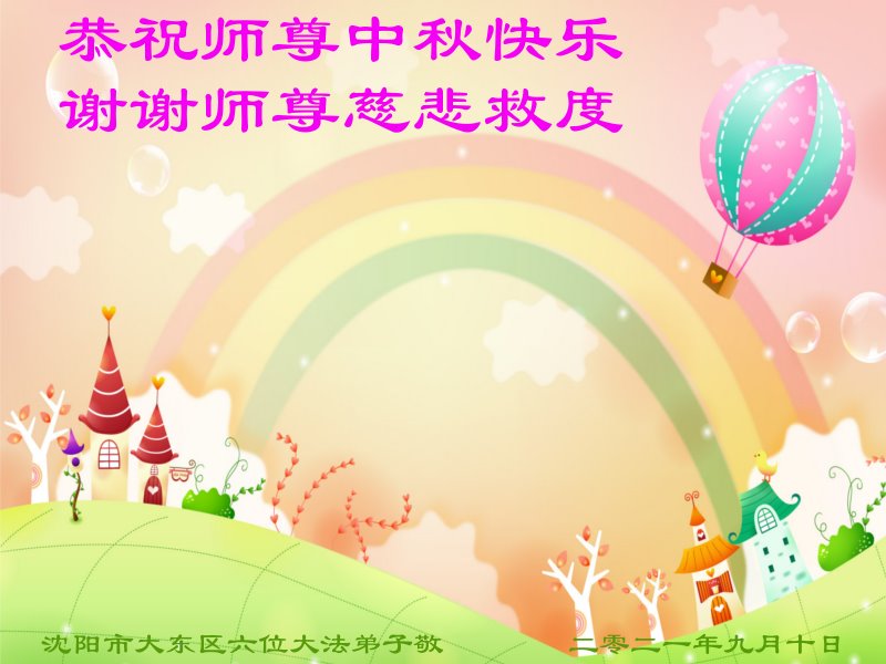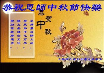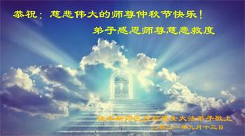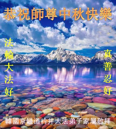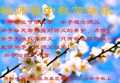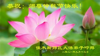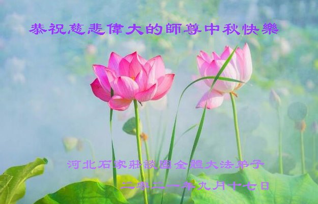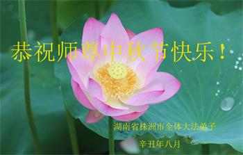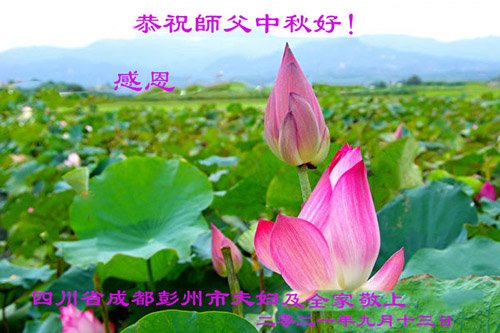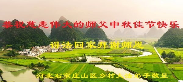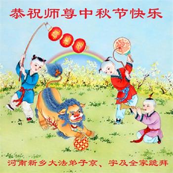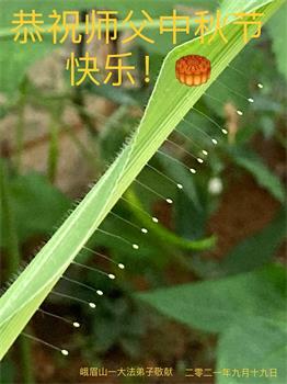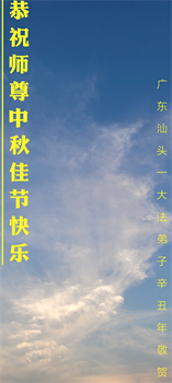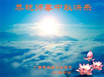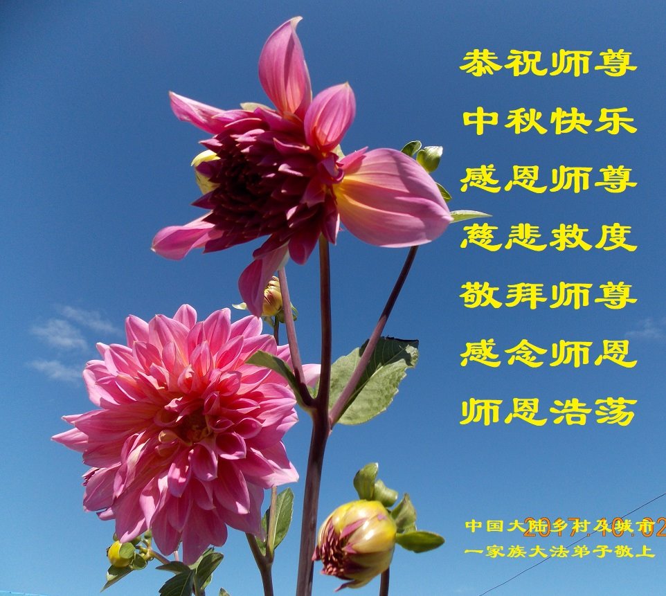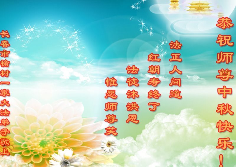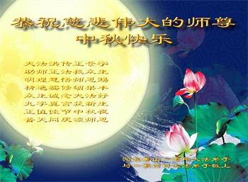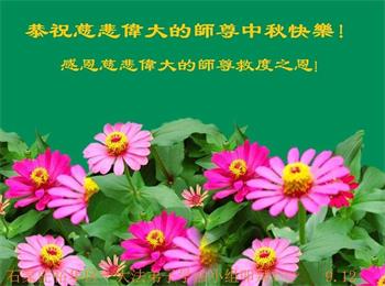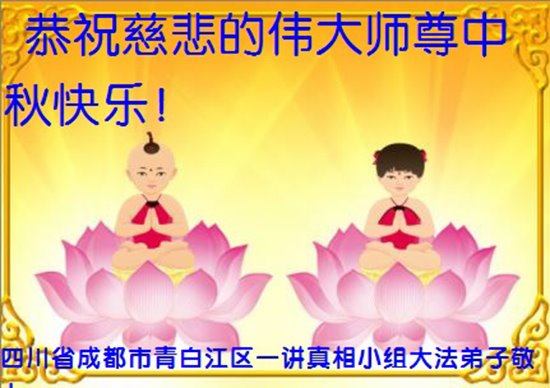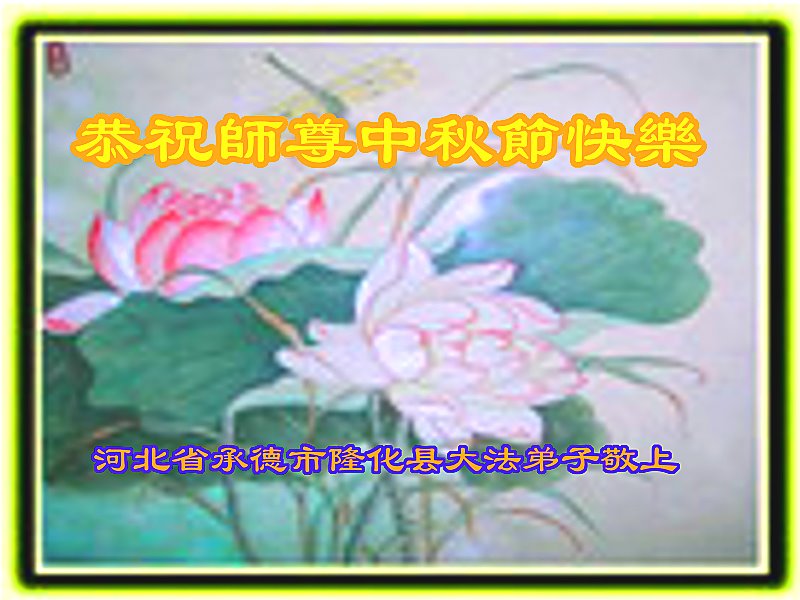 脑中装着大法,生命就有了希望,心中装着众生,再苦也不觉的辛劳,感恩师尊将法轮大法的法理捧到了我们的面前,赋予我们大法弟子的神圣荣光。每逢佳节倍思亲,值此中秋佳节即将来临之际,衷心遥祝师尊中秋节快乐!愿法轮大法好的佛光普照人间!