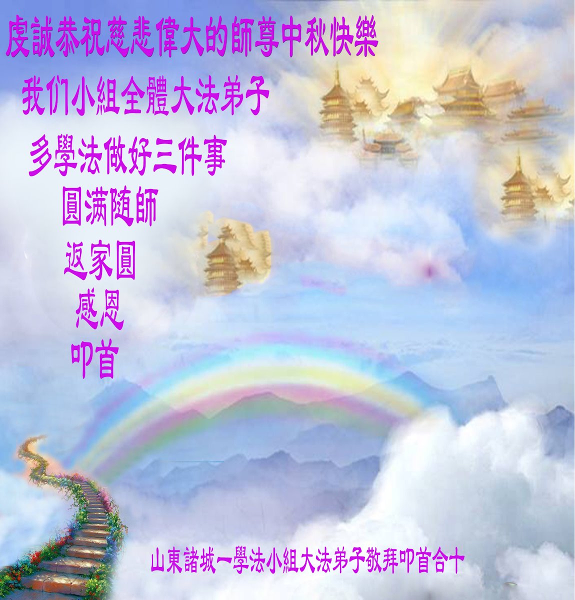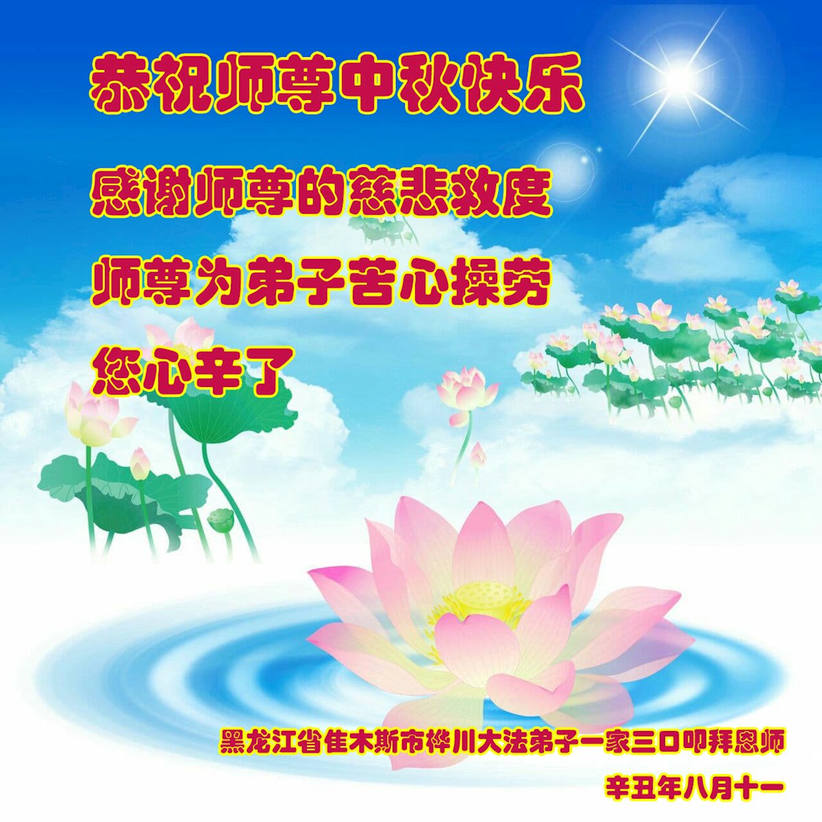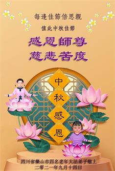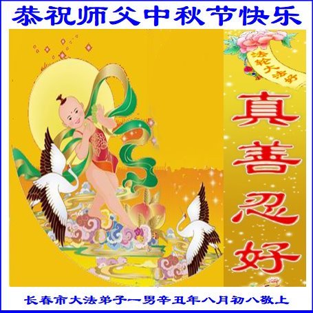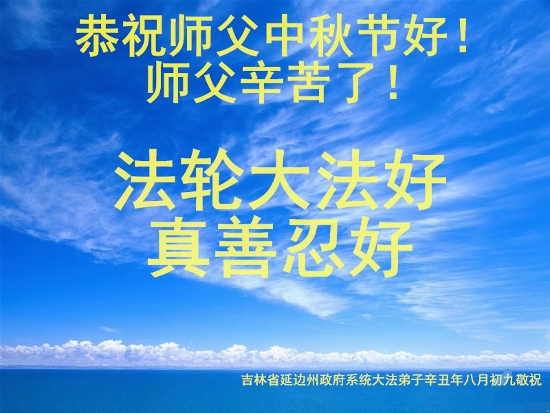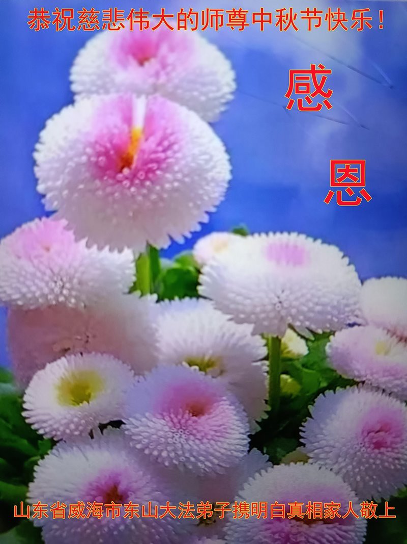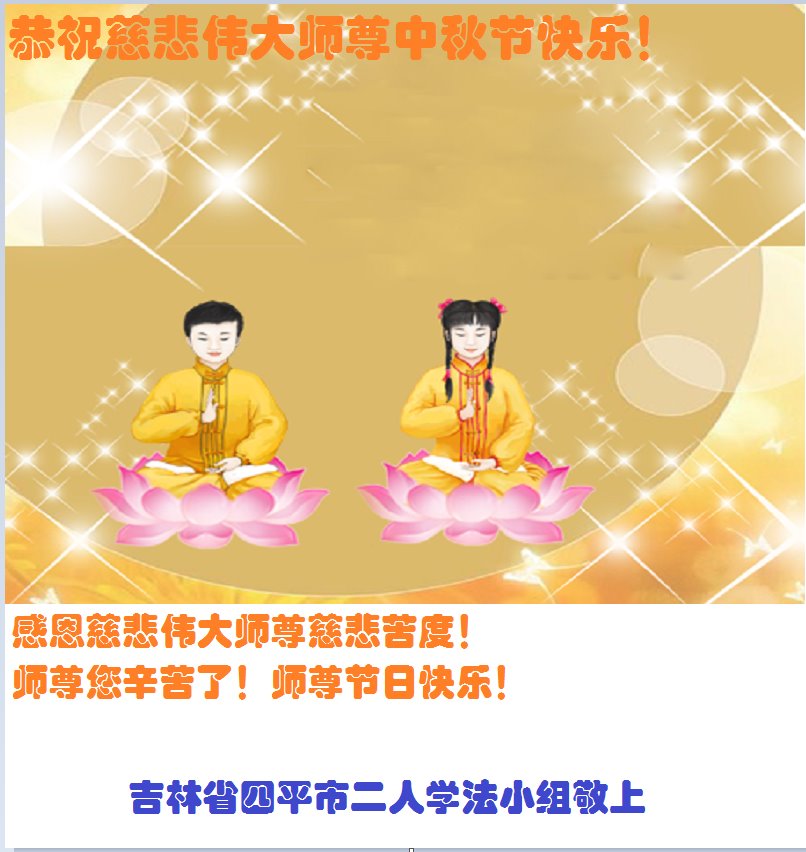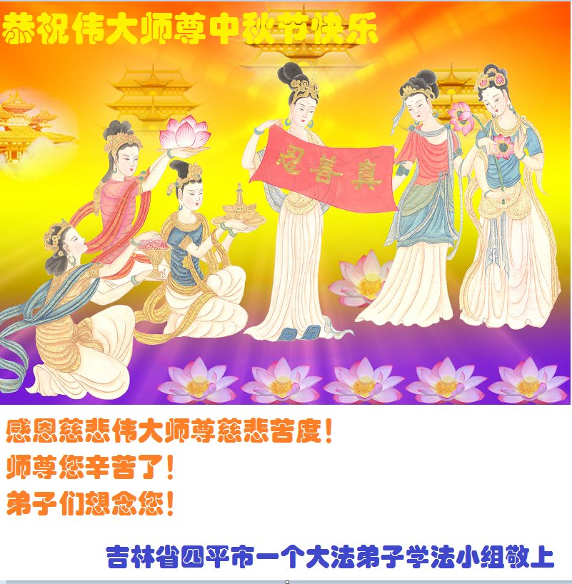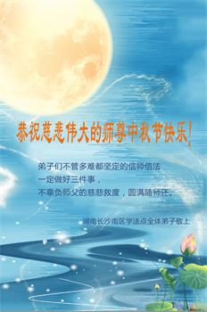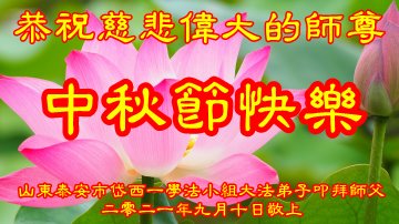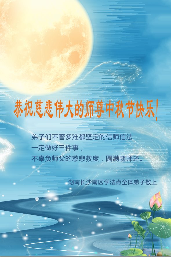 在中秋佳节到来之际,烟台市教育系统大法弟子想念师父,感恩师尊的慈悲苦度!在剩下不多的时间里,弟子们一定修好自己救度众生,惟愿师尊笑。
