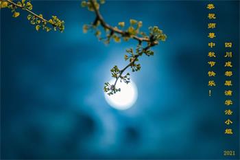 中秋月圆问师好,弟子跪拜谢师恩。