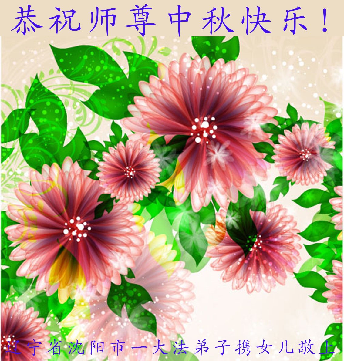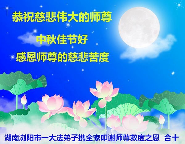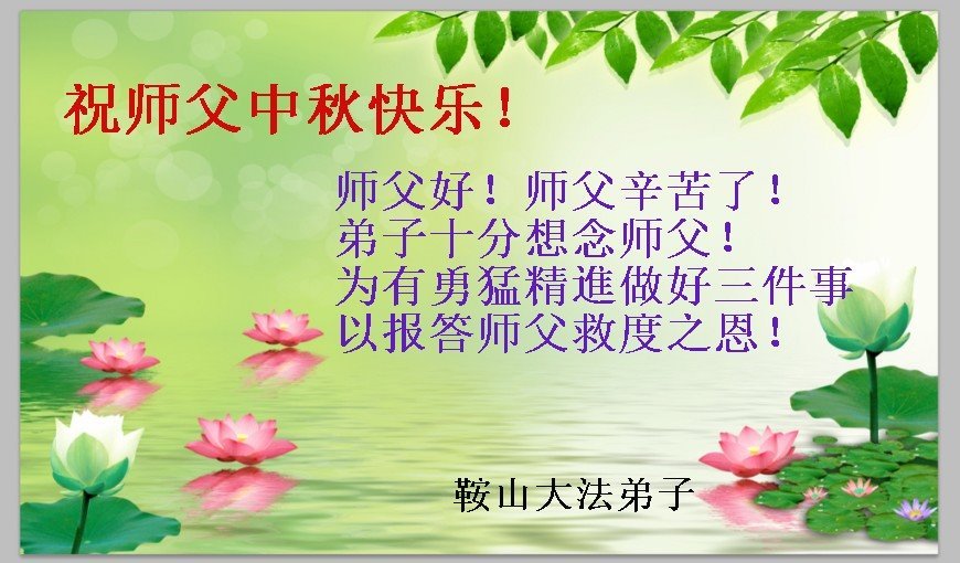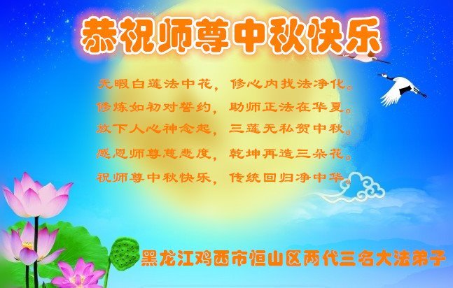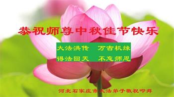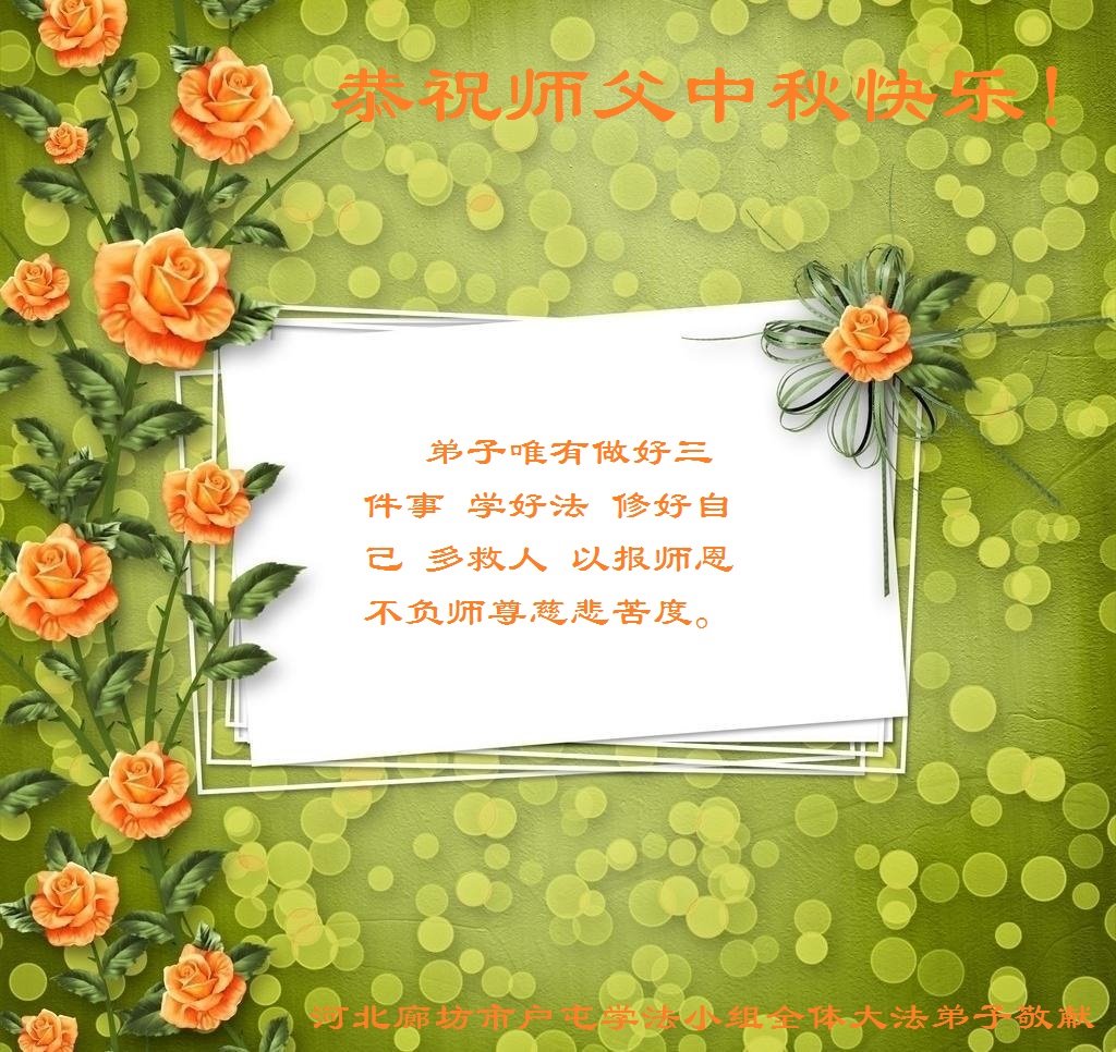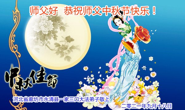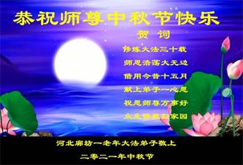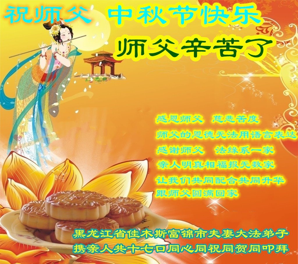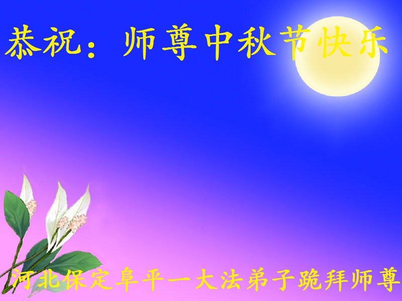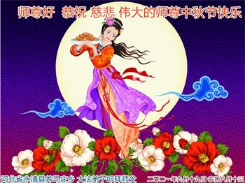 河北省沧州市一会计师大法弟子恭祝师父中秋节快乐!师父您好!师父辛苦了!谢谢师父慈悲救度!