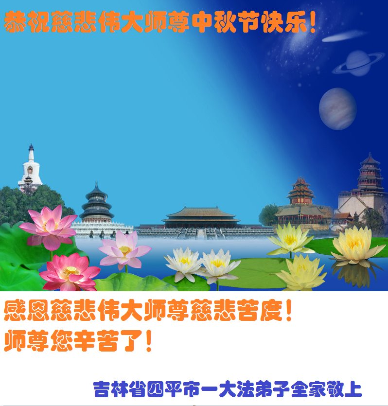 我代表装修行业的大法弟子,恭祝慈悲伟大的师父中秋节快乐!师尊为了救度弟子,师父辛苦了!