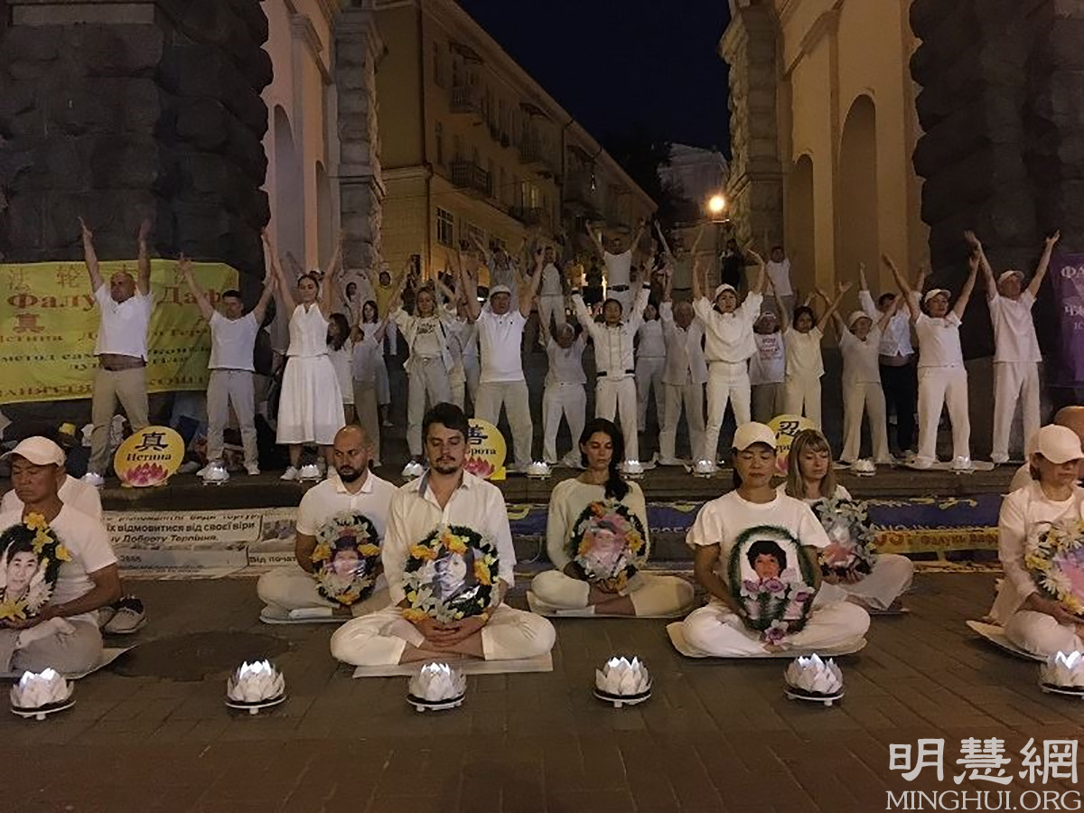 八月二十二日晚上,乌克兰法轮功学员举行了烛光悼念活动,缅怀被中共迫害致死的法轮功学员,并向世人派发真相报纸和传单,向人们讲述法轮功在中国遭到的惨烈迫害。许多明白真相的世人在“结束中共”的征签表上签名,谴责中共迫害真善忍信仰。