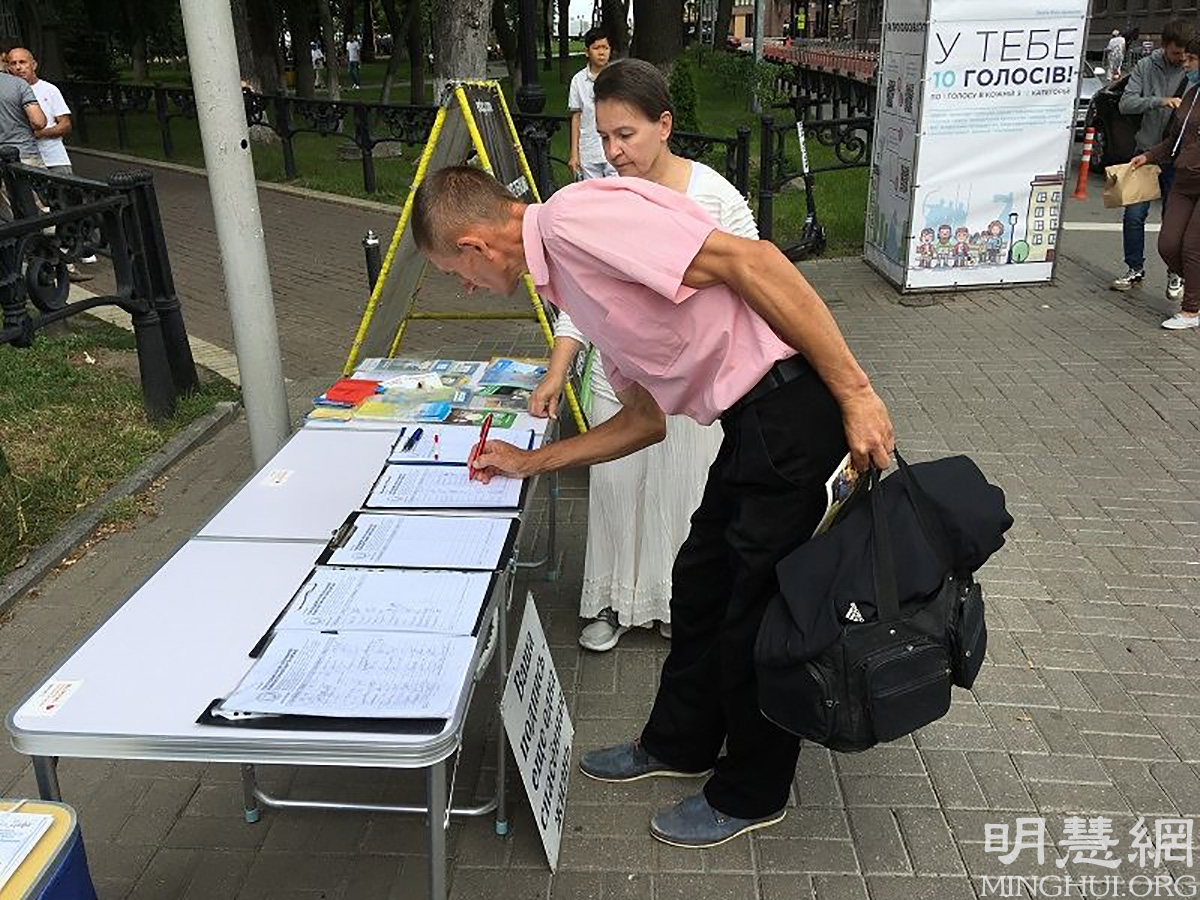 基辅的一位老妇人从大法活动中得知,在中国(中共)法轮功学员遭受迫害,有的被杀害被奸污,有的被镇压,她说:“绝对不能让这些事再发生了,必须立即停止迫害。你们尽力去做吧。”