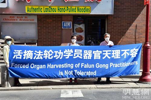 :退.集会。图为集会现场。'>图1~2:二零二一年九月二十六日,法轮功学员在费城唐人街举办声援3.8亿中国人三:退.集会。图为集会现场。 |