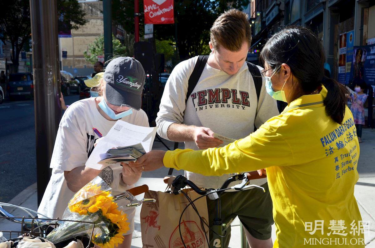 当天的集会引起了宾州民众的关注。许多人分享了他们的想法,并赞赏法轮功学员通过集会呼吁拒绝中共的勇气。