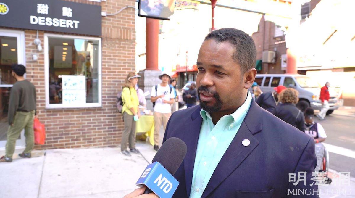 宾州州参议员谢里夫·斯惴特(Sharif Street)当天也到了集会现场。他说:“我来是因为我想支持言论自由。我知道法轮大法(学员)在中国实践他们的信仰和文化表达方面一直面临挑战。”