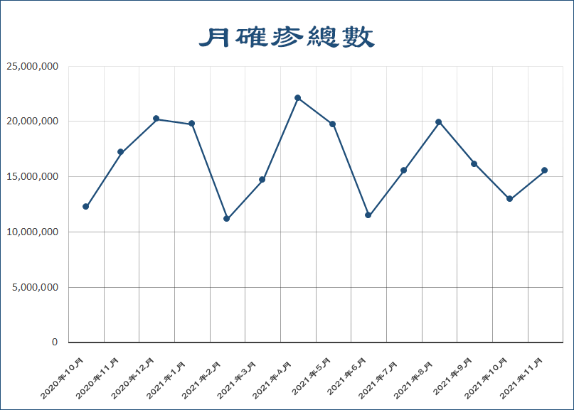 | 2020年11月 | 17,175,566 | 273,219 | 572,518 | 9,107 |