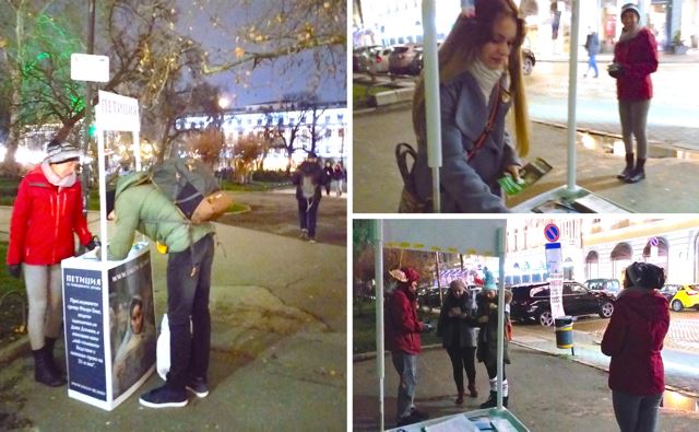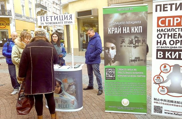 ![]() 图4:法轮功学员在首都索菲亚(Sofia)设立真相点,了解了真相的人们签署请愿书支持法轮功学员反迫害。 |