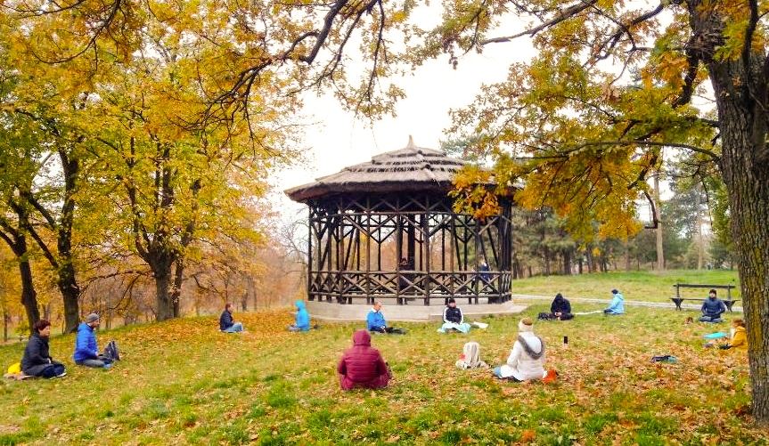 法轮功学员首先在罗曼内斯库公园(Romanescu Park)炼功。来公园散步的游客被法轮功学员祥和的炼功场面所吸引,并开始学功。一位男士学炼了功法后说,他感觉很好,“很容易学。”
