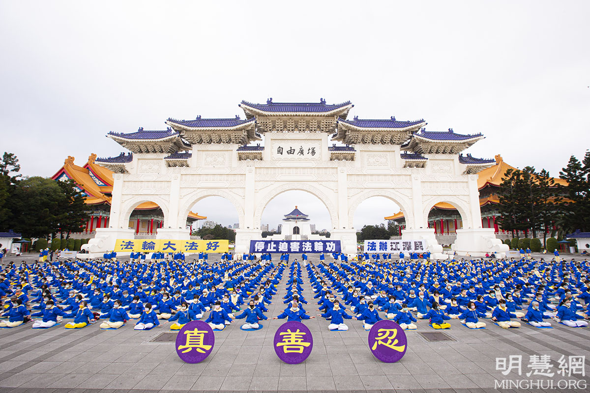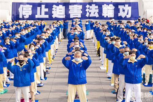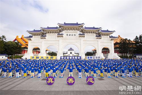 ![]() 图1:台湾双北地区约千余名法轮功学员二零二二年一月十六日齐聚台北自由广场,向法轮功创始人李洪志大师拜年。 |