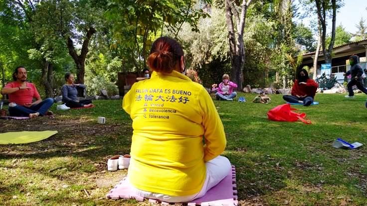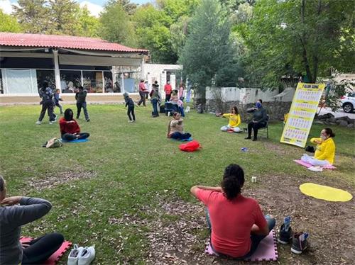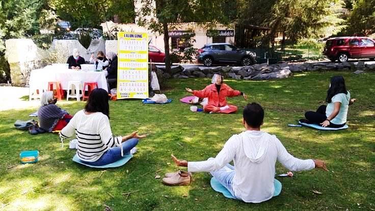 学员首先向现场有兴趣改善身体状况和生活质量的人们,展示了包括打坐在内的优美舒缓的五套功法。民众表示,通过祥和的炼功音乐,很容易进入宁静和轻松的状态中。