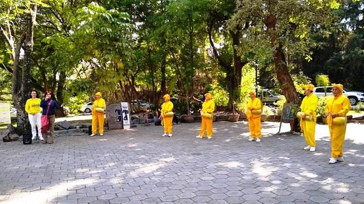 学员们展示了五套功法,并做了腰鼓表演等,在集市期间与民众分享真、善、忍原则,以及修炼后身心受益的体验,同时揭露中共对法轮功和法轮功学员的迫害。