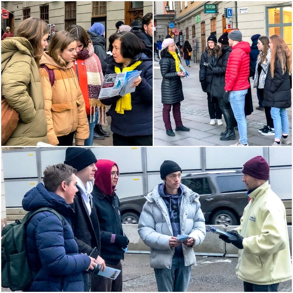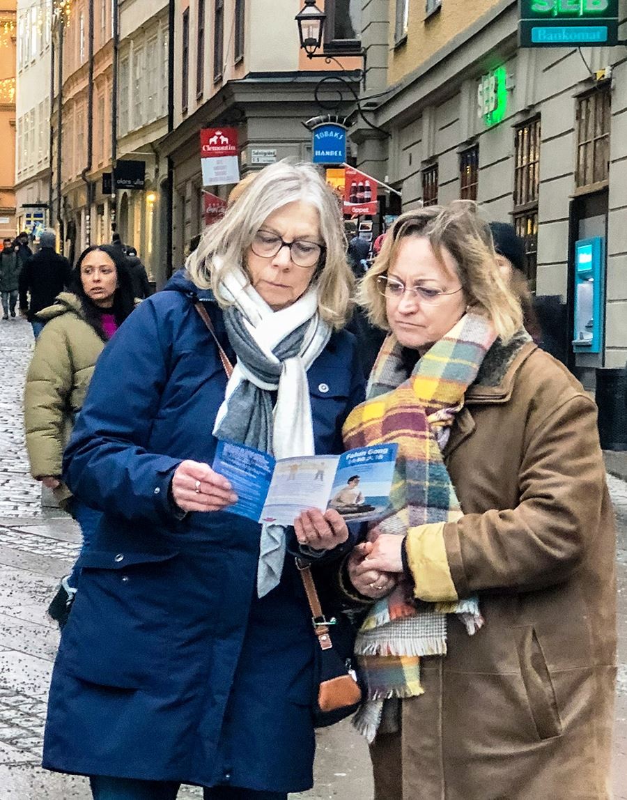 进入十二月份以来,尽管疫情阴影仍笼罩着,但热爱生活的瑞典人如往年一样开始准备圣诞、新年礼物了。每逢周末两天,在斯德哥尔摩市中心通往老城的钱币广场上,来来往往的人群中,无论男女老少都有机会看到法轮功学员在这里举办的讲真相活动。