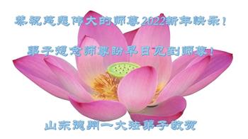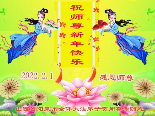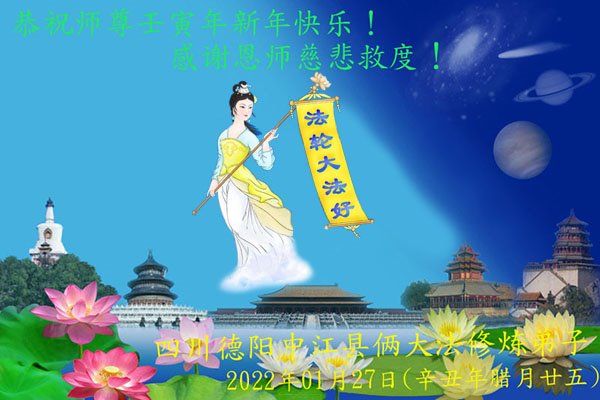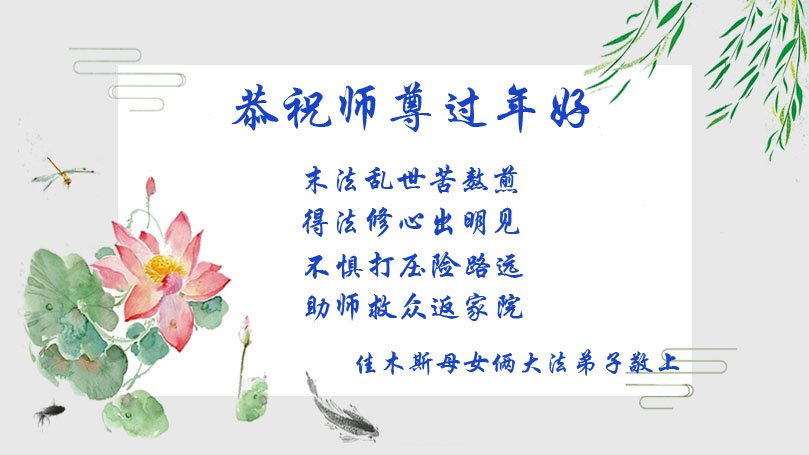 江苏省司法系统大法弟子恭祝师尊新年快乐!他们写道:留给我们救人、修炼的机会越来越少了,弟子一定会珍惜这宝贵的圣缘,精進实修。弟子期盼着与师父相聚的那一天。