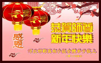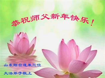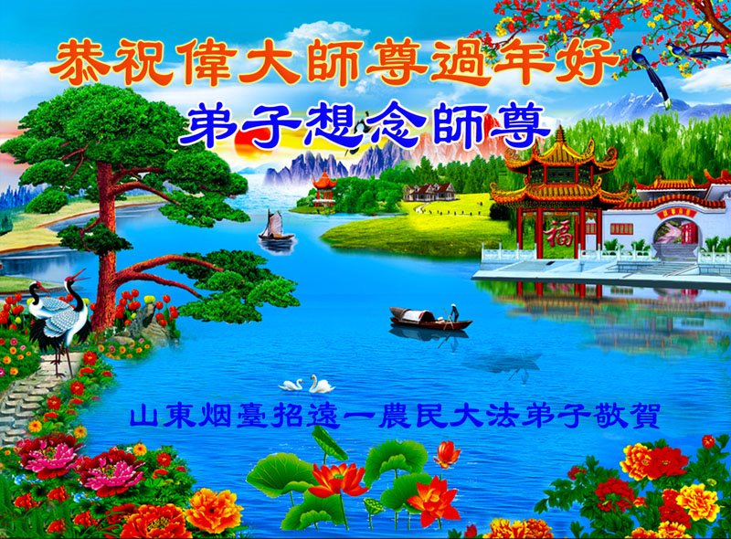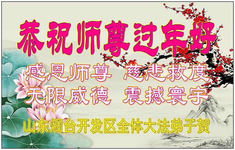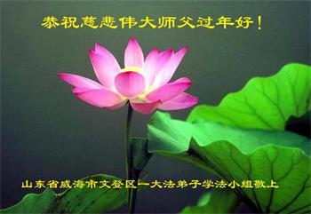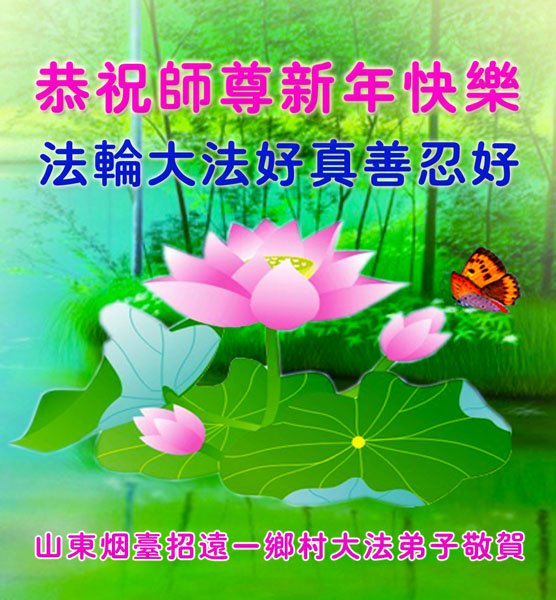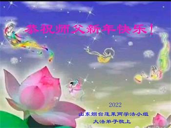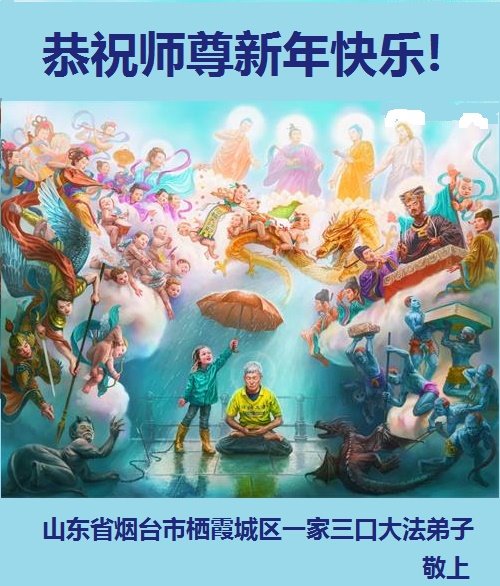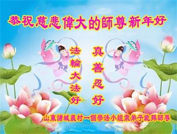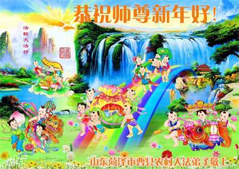 山东招远一新学员与全家人及明真相亲人恭祝师尊过年好!