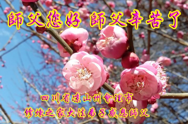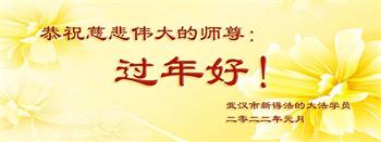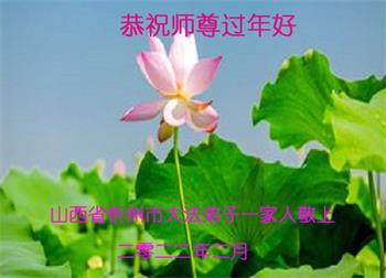 我是陕西省汉中一新学员,身患癌症命悬一线之际有缘得法修炼,身体很快恢复,值此佳节,我和全家叩谢师父救命之恩,恭祝师父过年好!