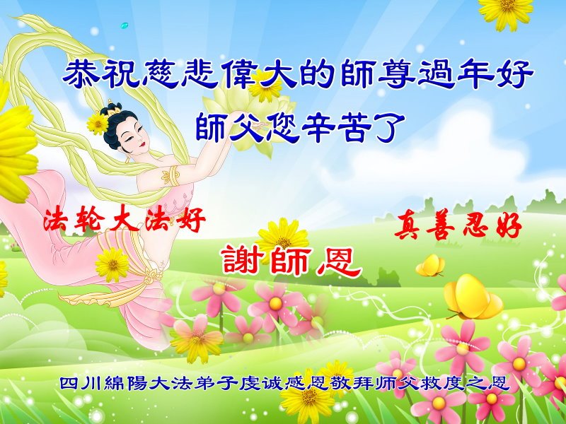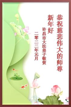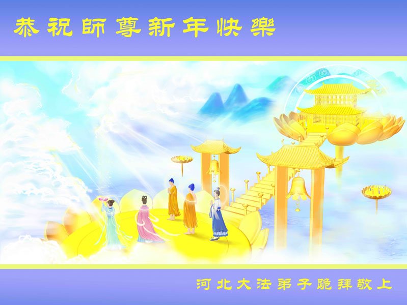 我是得法两年的大法弟子,在这里弟子给师父拜年了!在这得法修炼的两年多时间里,师父您给弟子净化了身体,净化了心灵,让我感觉到了法轮在给弟子净化身体时的变化,感受到了大法的神奇和玄妙,弟子在修炼的路上还需要精進再精進!
