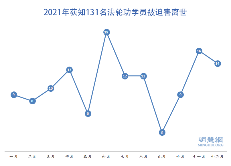 ![]() 图2:二零二一年获知131名法轮功学员被迫害离世 |
