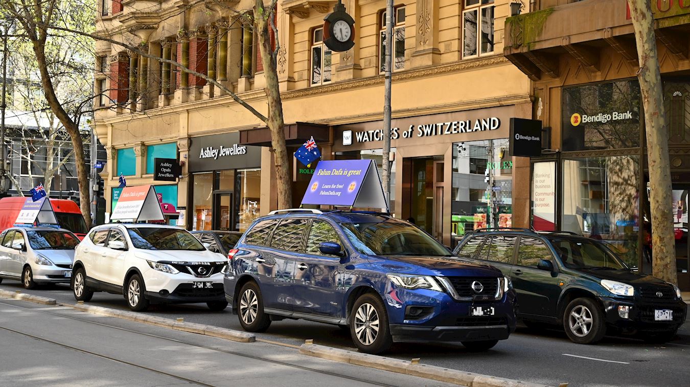 ![]() 图1~9:二零二二年八月和九月,澳洲墨尔本法轮功学员组成的真相车队,多次利用周末在市中心和周边闹市区巡游,传播大法的福音和反迫害真相。 |