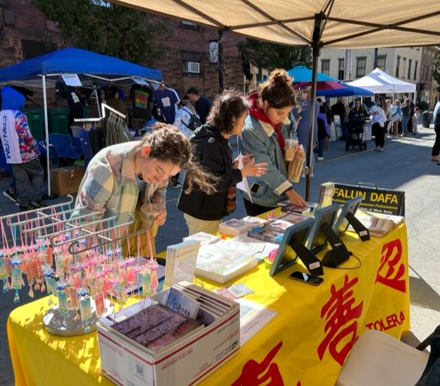 奥伯尼市是纽约州的首府,位于哈德逊河畔,有四百年的丰富历史和文化。在法轮大法的展位上,学员们全程演示着法轮功五套功法,优美,平静,祥和的气氛吸引了很多民众的目光,纷纷上前询问,了解真相。
