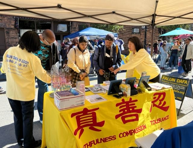 ![]() 图2~4:二零二二年九月二十四日,在美国纽约首府奥伯尼的云雀街艺术节上,法轮功学员在给民众讲真相并征签反迫害。 |
