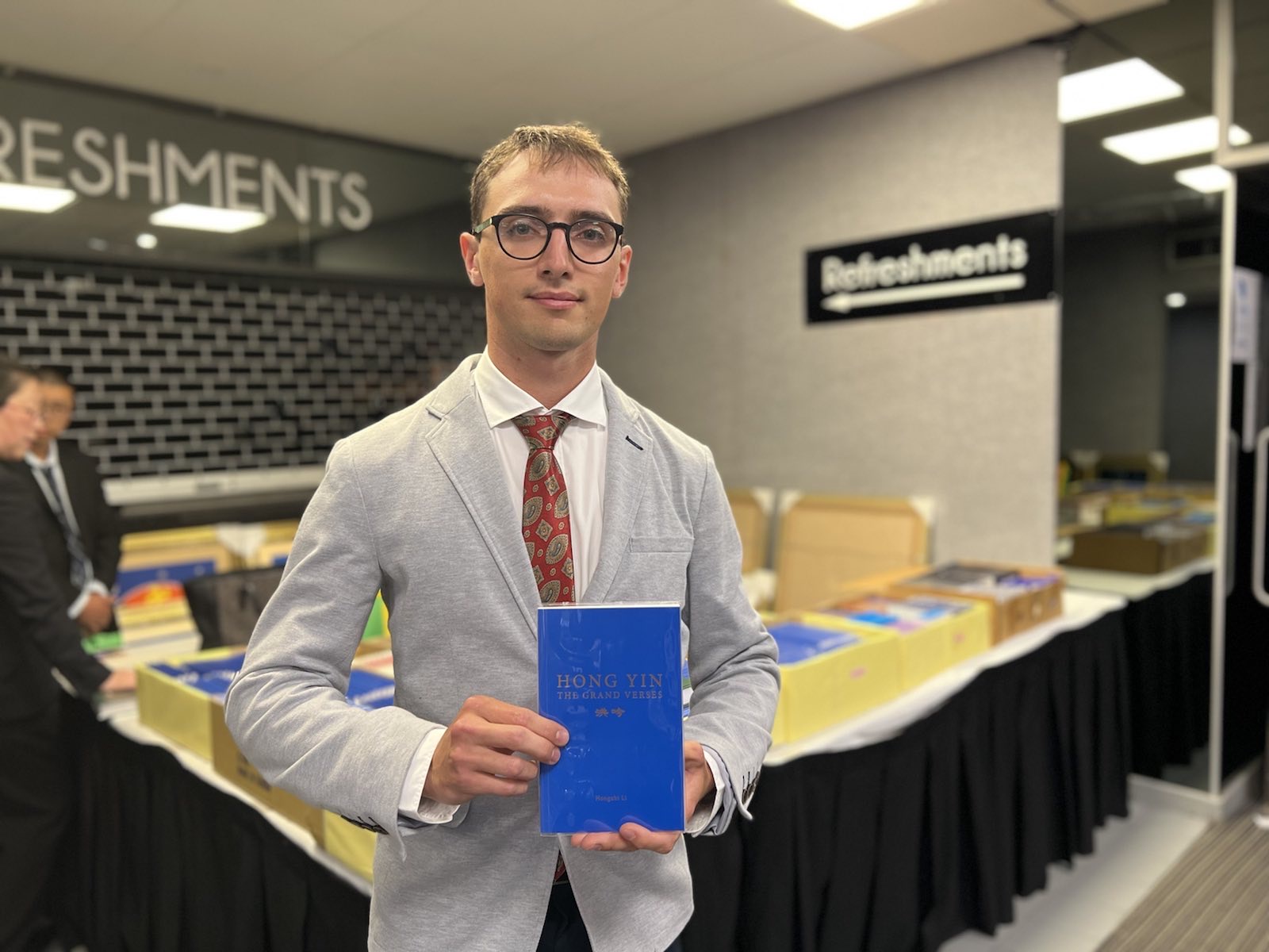 布里斯本的路易斯(Louis)请购了一本《洪吟》,他说:“今天的法会,让我认识到认真学法的重要性,同修分享了他们背法心得,使我深受启发,我想从《洪吟》开始背法。以前读《洪吟》的时候,就感觉能量很强,并真能加持我的正念。我觉得有一本实体书会更好的经常学法。”
