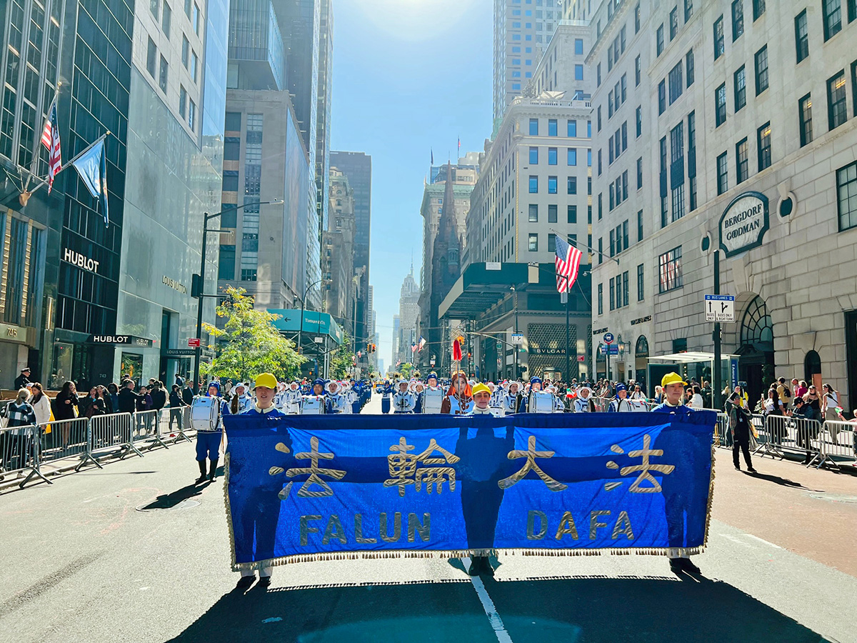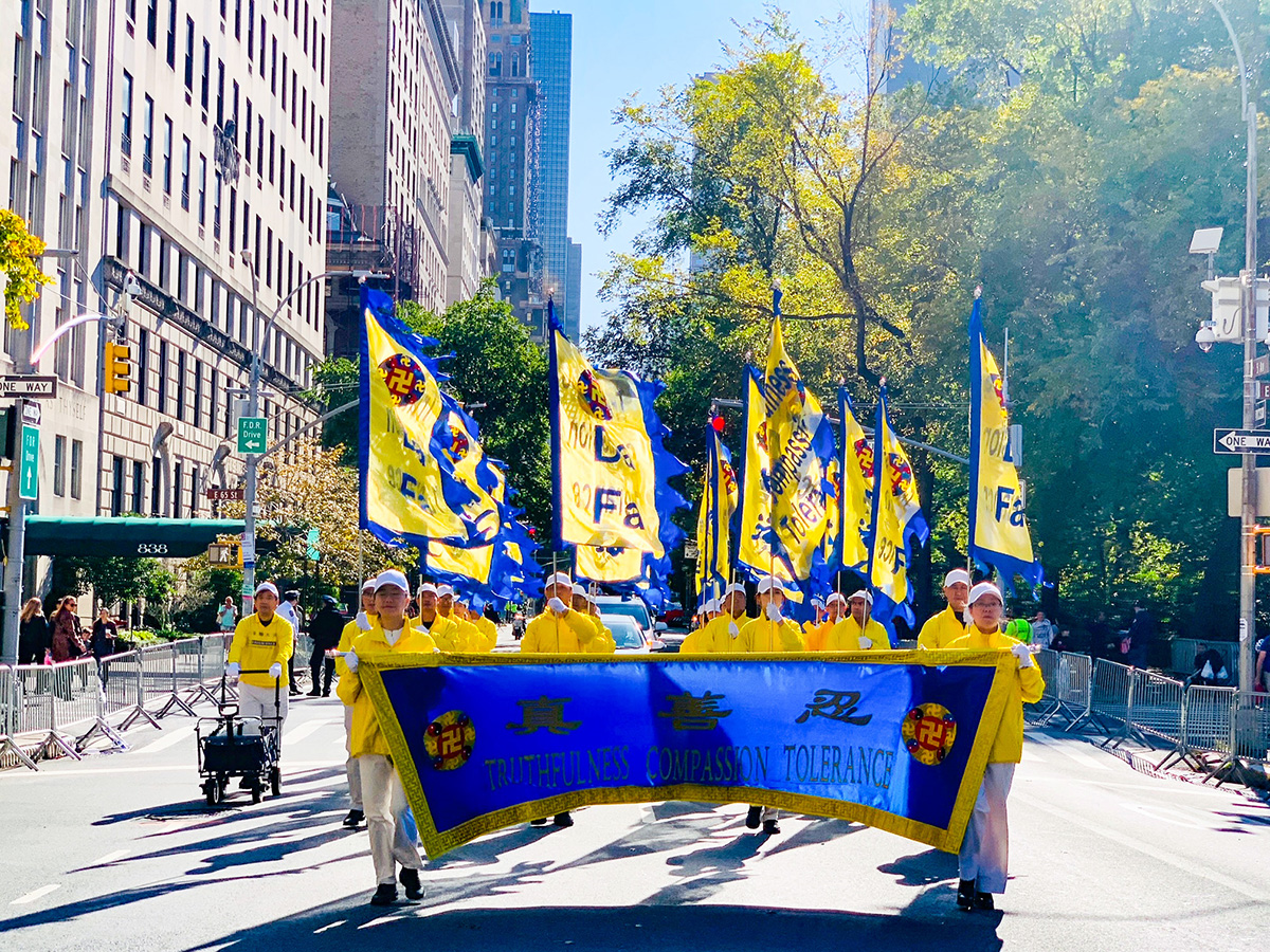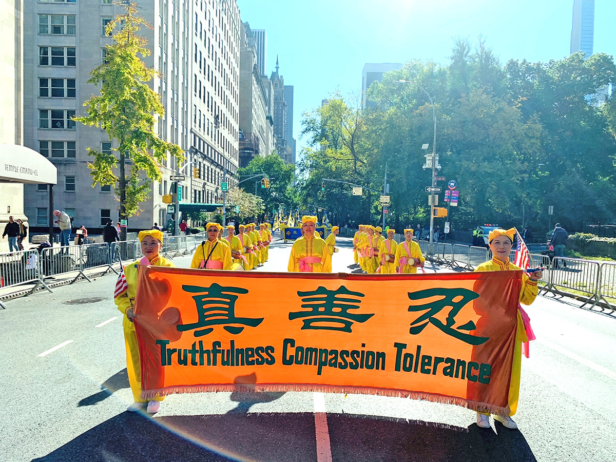 ![]() 图1~3:二零二二年十月十日,纽约部份法轮功学员组成的天国乐团、腰鼓队、炼功队和旗阵,参加了纽约市第七十八届哥伦布日(Columbus Day Parade)游行。 |
