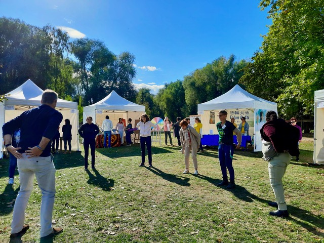 这个嘉年华会的气氛轻松、愉快,是当地人碰面和交流的机会,大家来到这里分享不同的消费与生活心得,期待打造更公正、互助的社会。各行各业五十多个协会参与了这个活动,包括关怀生态、人情互助、饮食等展位,法轮功学员的展位在保健区。