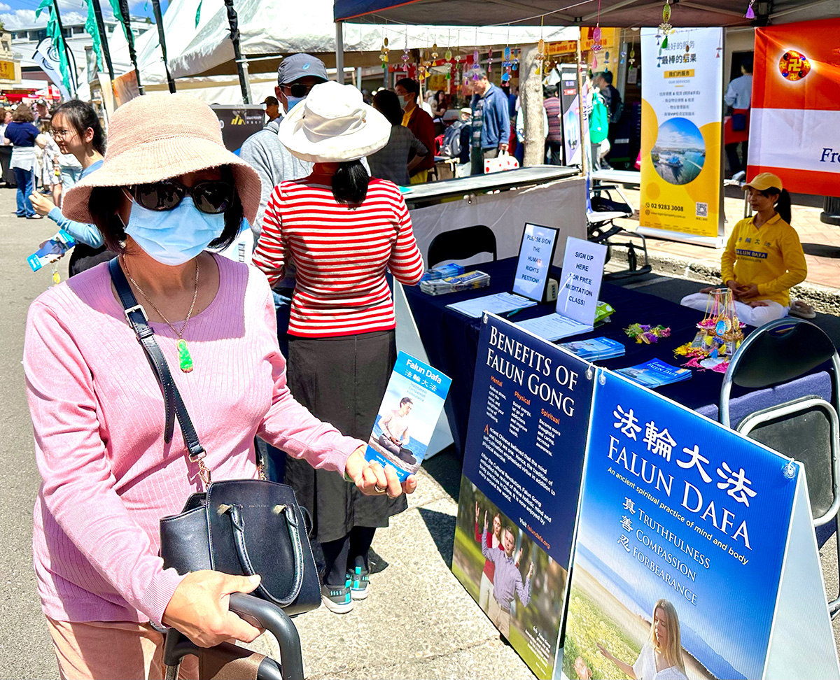 卡门(Carmen)是法轮功展位对面的健康服务展台的一名义工。她说,她从曾经生活在中国大陆的中国同事那里听说了法轮功和中共迫害法轮功的真相;她还在购物中心的法轮功展位上也了解到相关信息。她很高兴在这里又看到了法轮功展位。