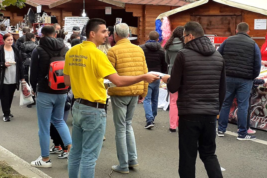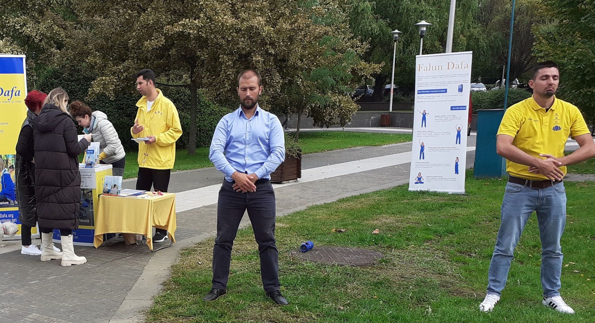 ![]() 图1~2:二零二二年九月二十三日至二十五日,罗马尼亚法轮功学员在拜亚马雷市(Baia Mare)栗子节(Chestnut Festival)传播真相。图中学员在演示法轮功功法。 |