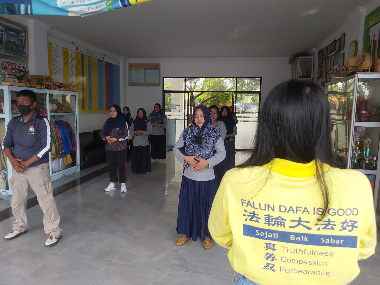 二零二二年十月十五日周六,法轮大法学员在巴丹岛第31国立初级中学(SMPN 31)举办活动。约三百余名该校师生参与了此介绍活动。