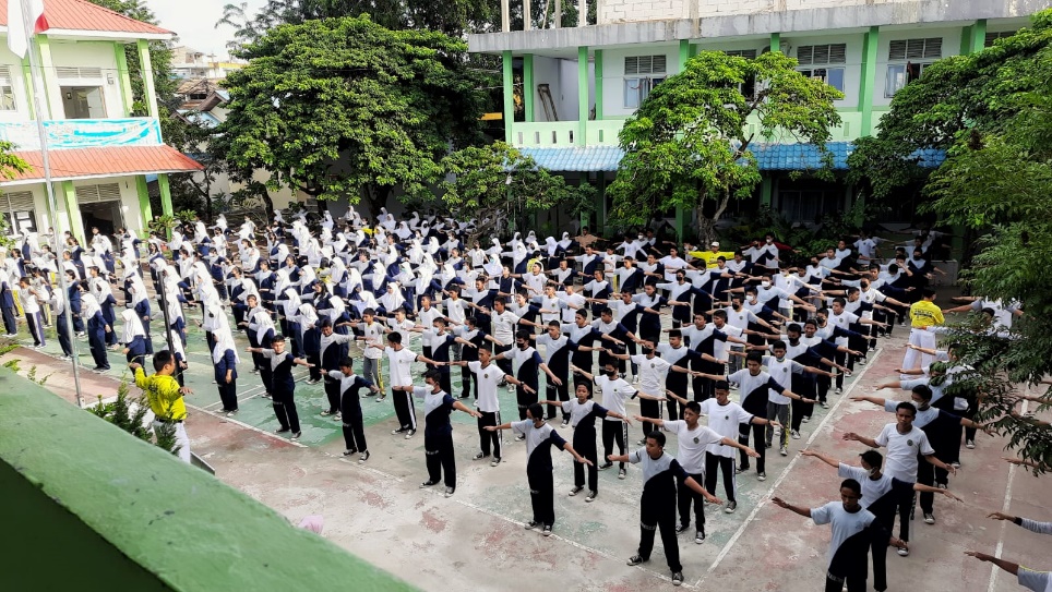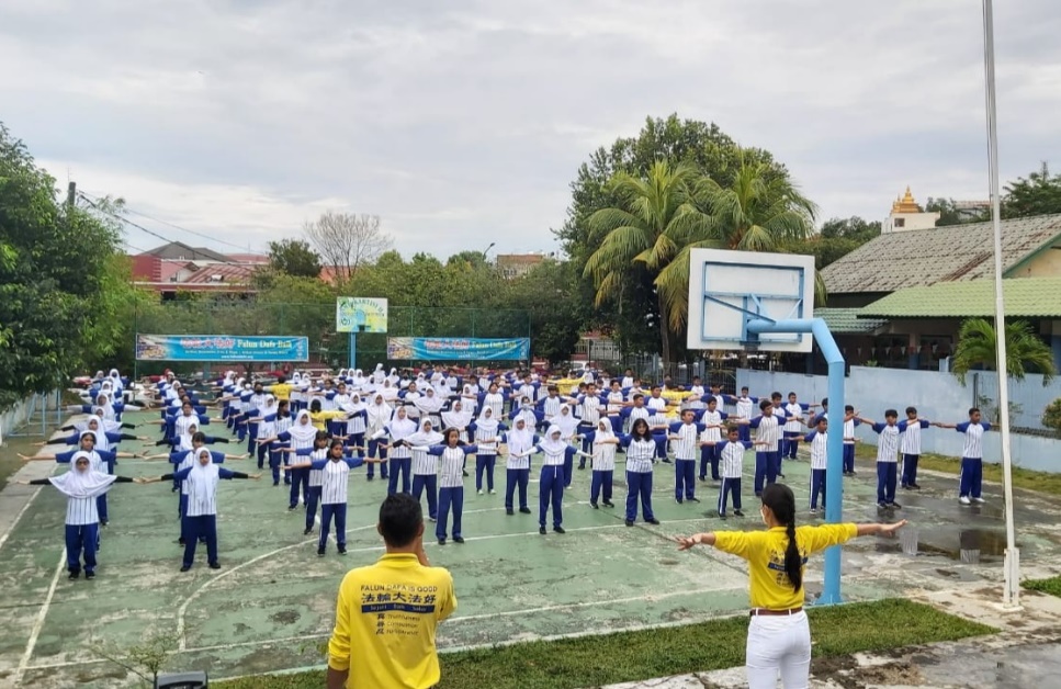 二零二二年八月二十七日,约六百余名巴丹岛第42国立初级中学(SMPN 42)的师生们参与了法轮大法介绍活动。