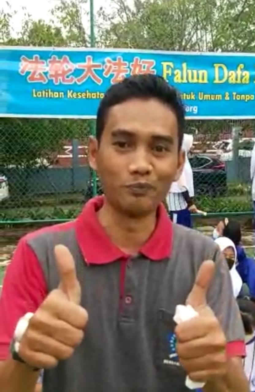 巴丹岛卡尔蒂尼第二初级中学校长,阿立夫·优提斯蒂拉讲述了他炼功后的心得。他说:“法轮大法好,锻炼身心健康,训练学生们身心健康,健康的不只是身体,还有其精神。”